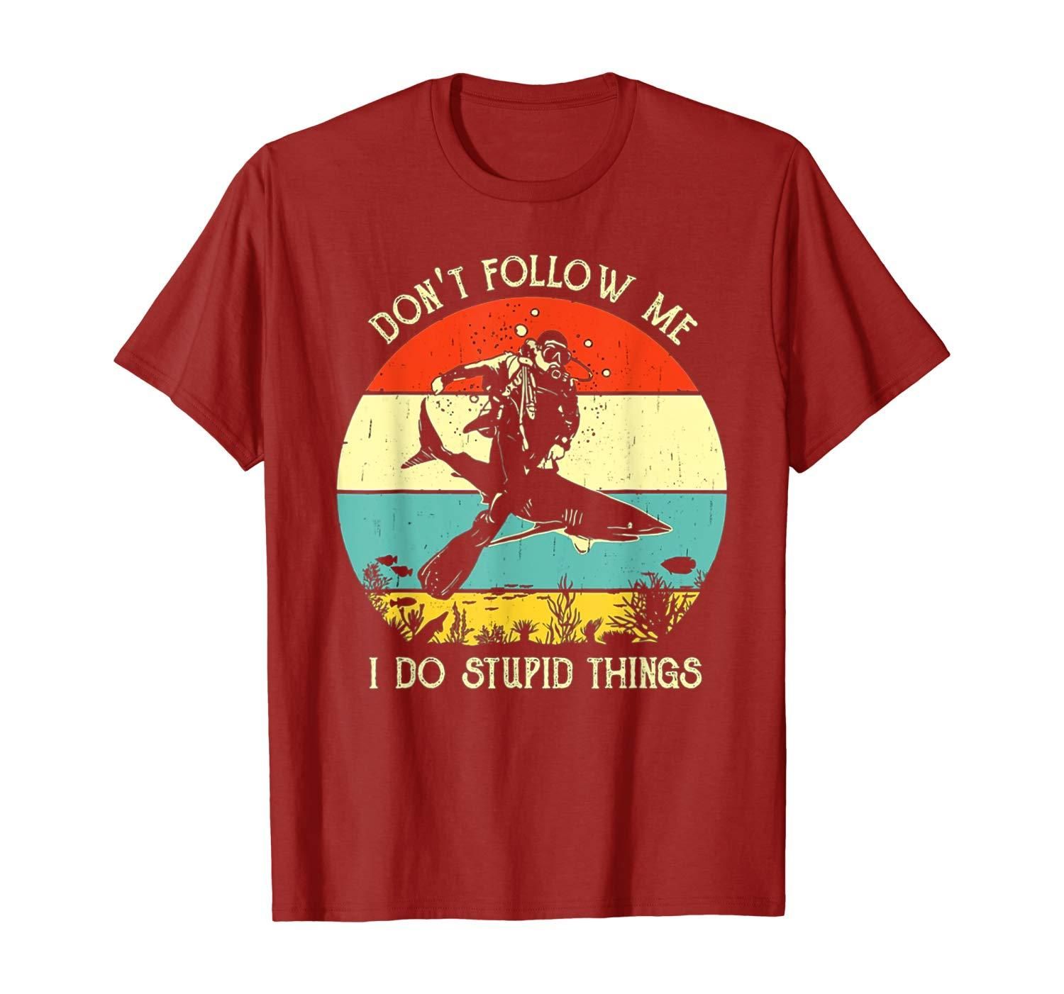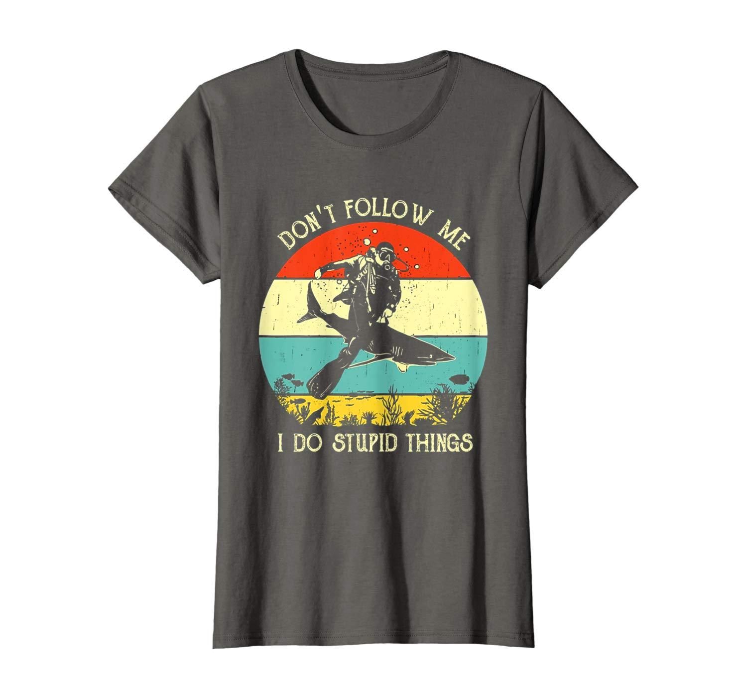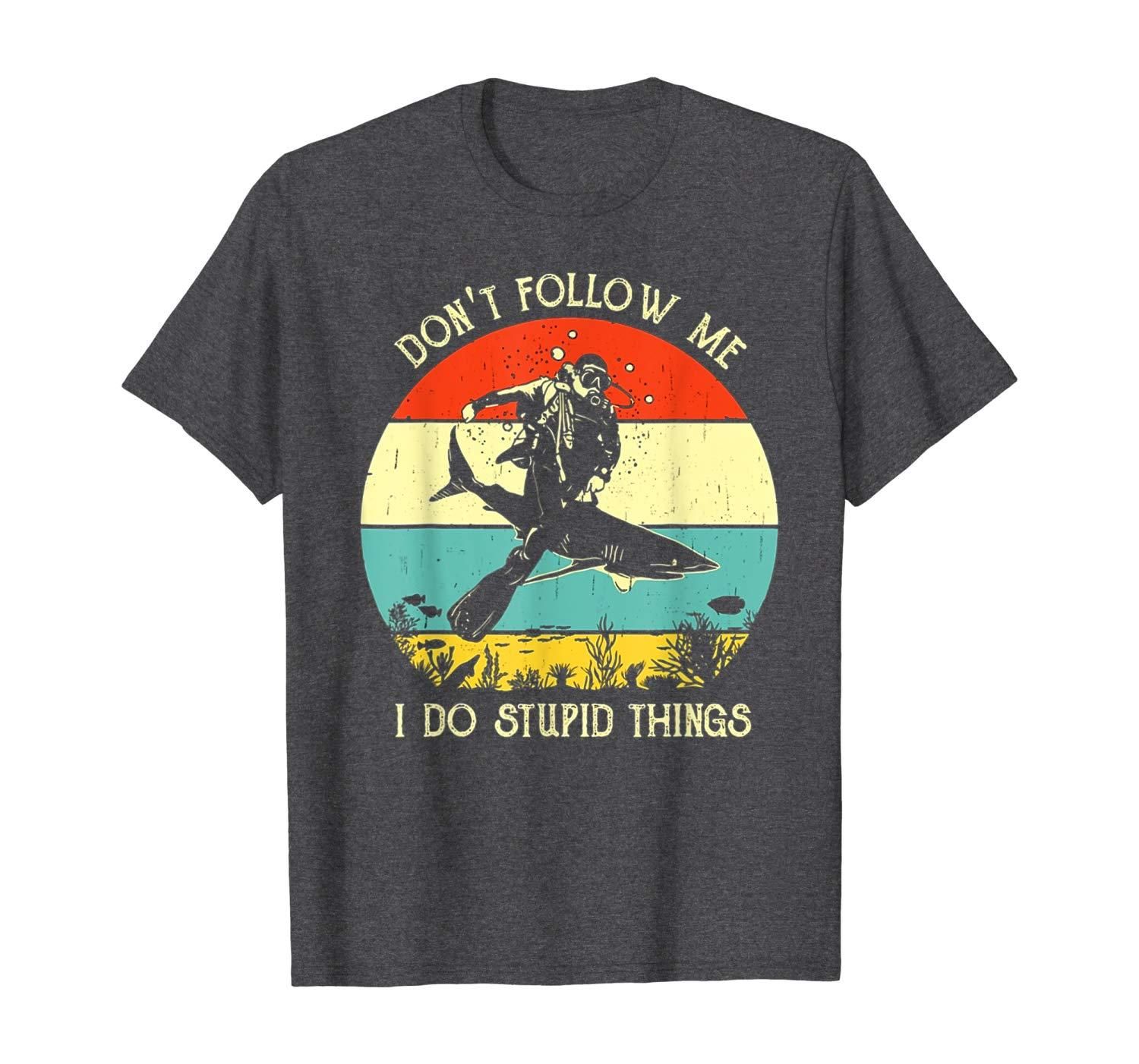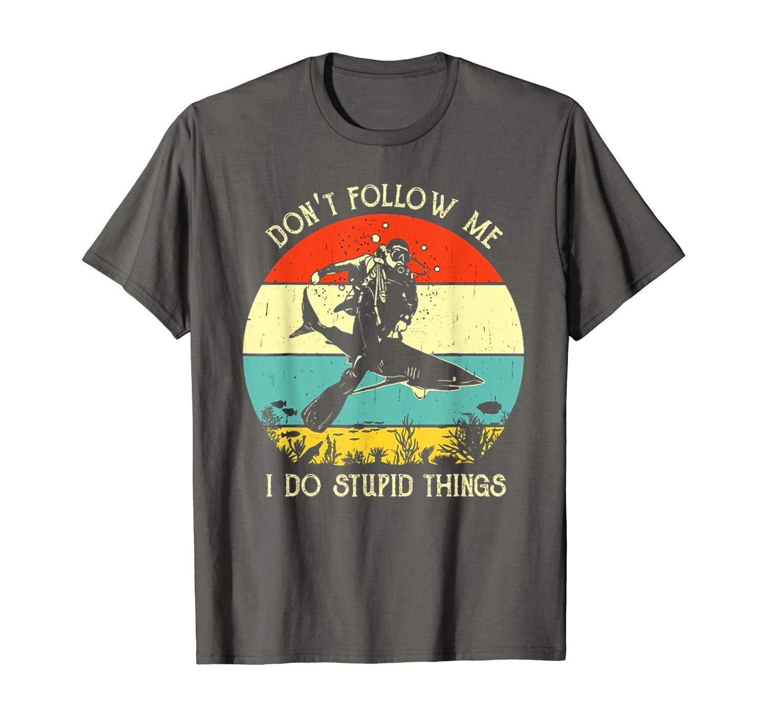 • Do not follow me i do stupid thing scuba diving shark vintage retro sunset lover gift vintage retro shark underwater diving lover gift dive with shark vintage retro tee