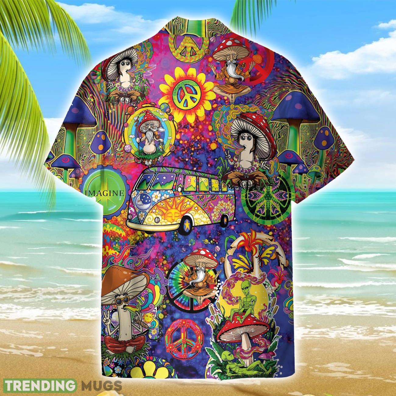 Featuring a mesmerizing all-over print (AOP) with a burst of colors, this shirt is a head-turner wherever you go. Its vivid patterns and hippie-inspired motifs will transport you to the sun-soaked beaches of Hawaii, evoking a sense of relaxation and tranquility.