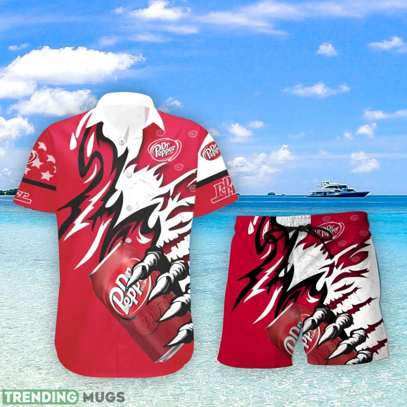 Crafted from premium quality materials, this Hawaiian shirt and shorts combo offers ultimate comfort and style. The shirt features a captivating Dr Pepper Monster Claw design, with its iconic logo and a playful touch of tropical vibes. Whether you’re lounging by the beach or attending a summer party, this shirt is guaranteed to make you the center of attention.