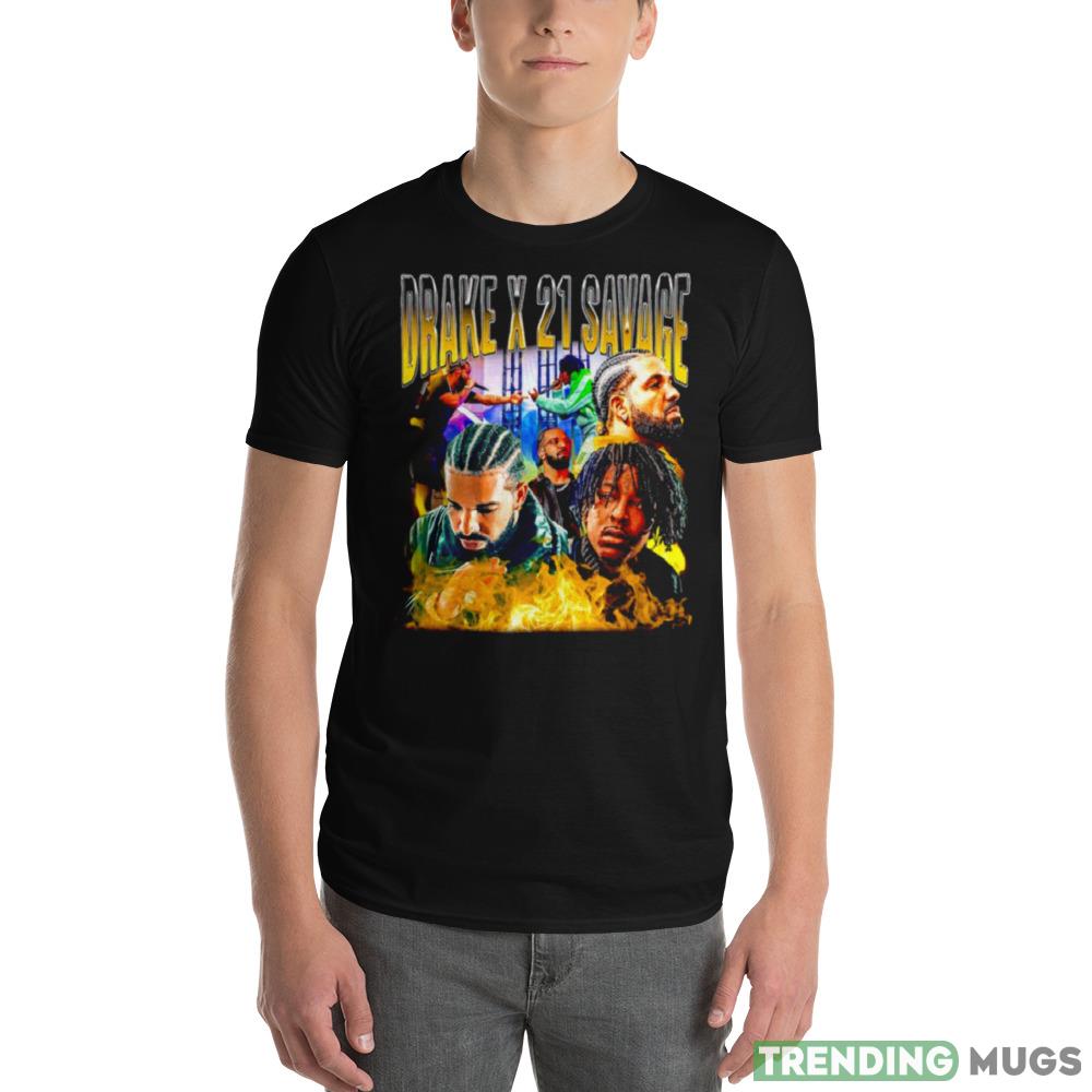 Crafted from high-quality materials, this shirt is both comfortable and stylish. The bold design features a graphic of Drake and 21 Savage side by side, with their names emblazoned in bold letters underneath. This eye-catching design is sure to turn heads and make a statement wherever you go.