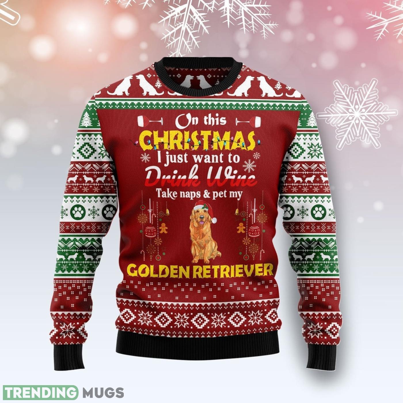 Drink Wine Pet My Golden Retriever Ugly Christmas Sweater Cute Christmas Gift For Men And Women Informations: