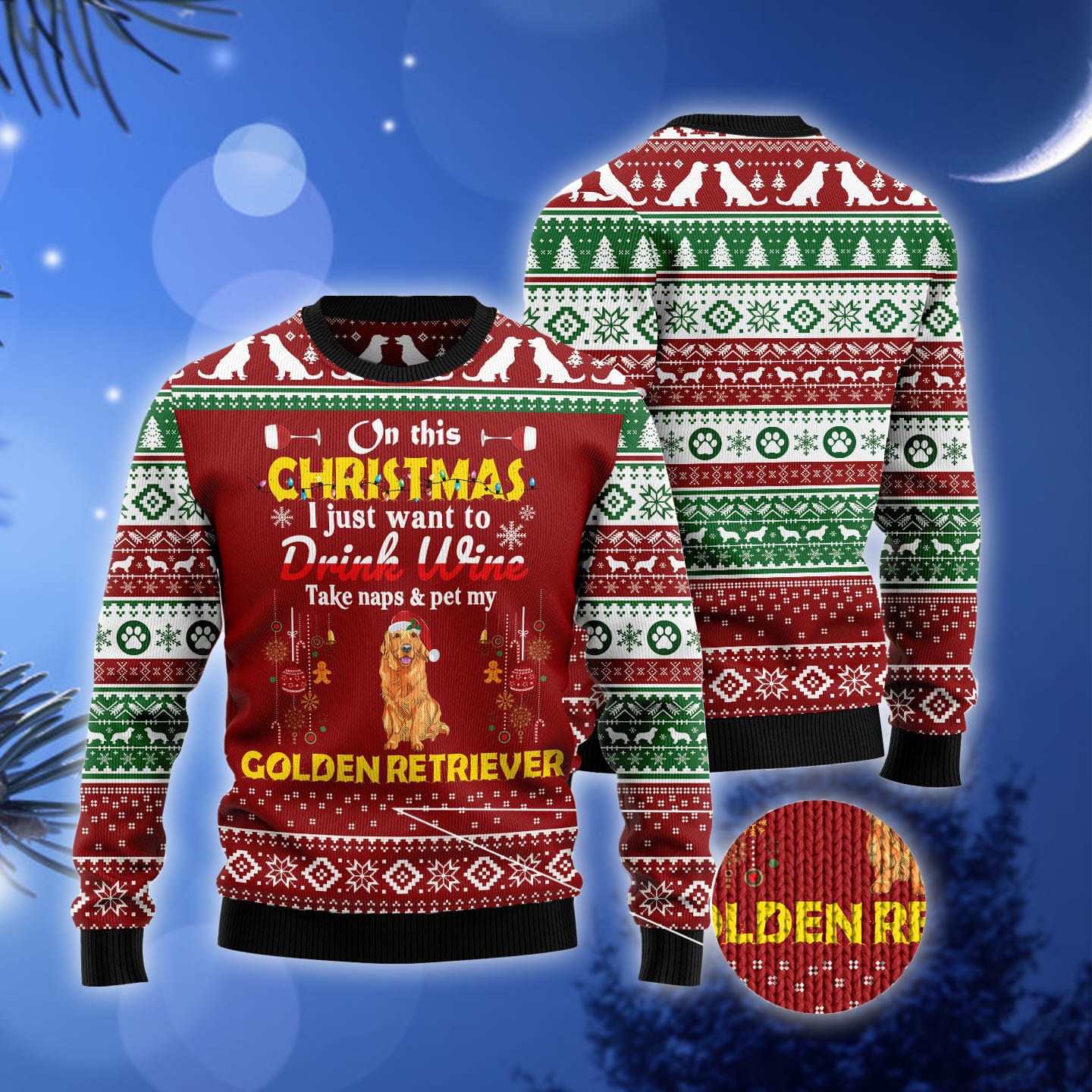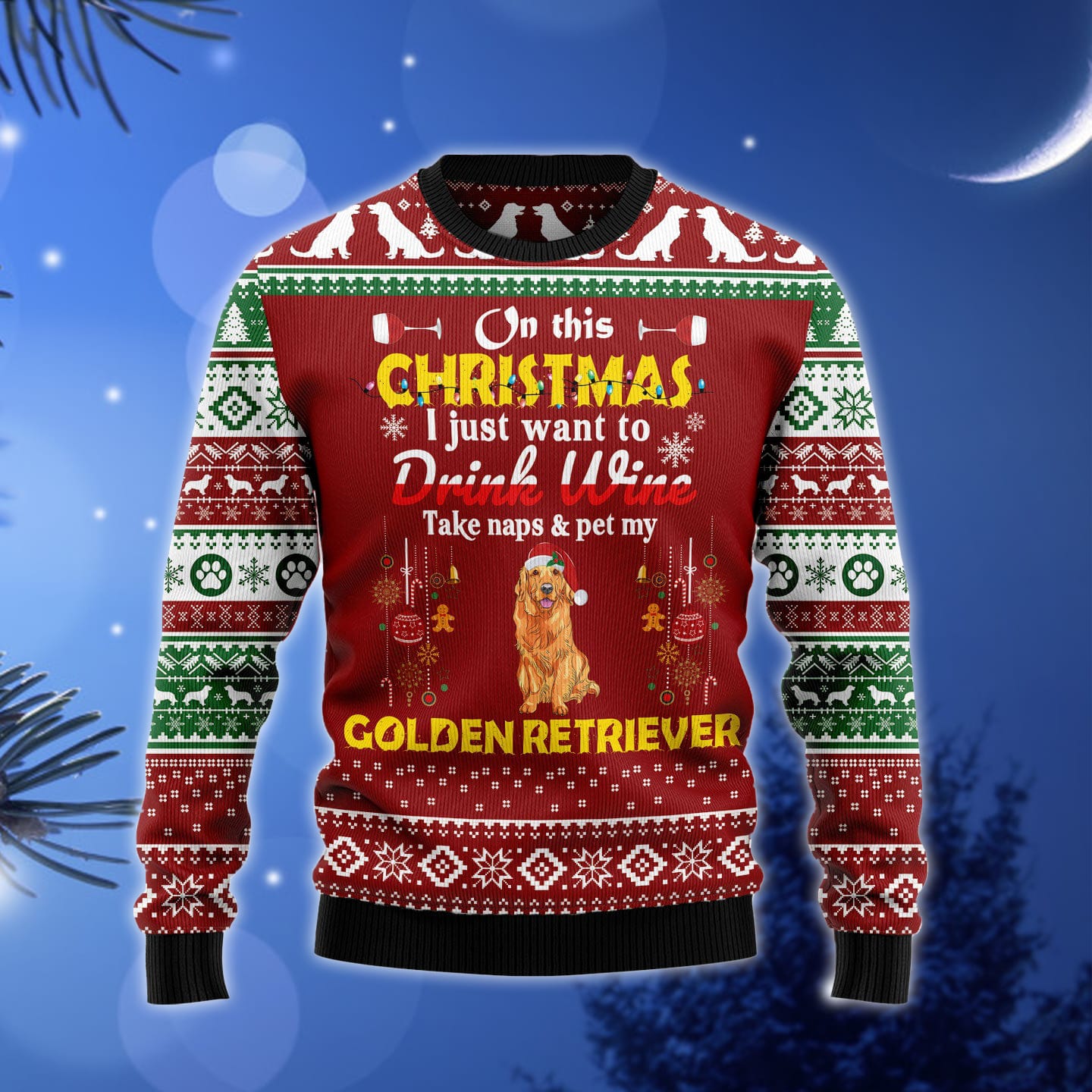 Drink Wine Pet My Golden Retriever Ugly Christmas Sweater Gift Men Women Informations: