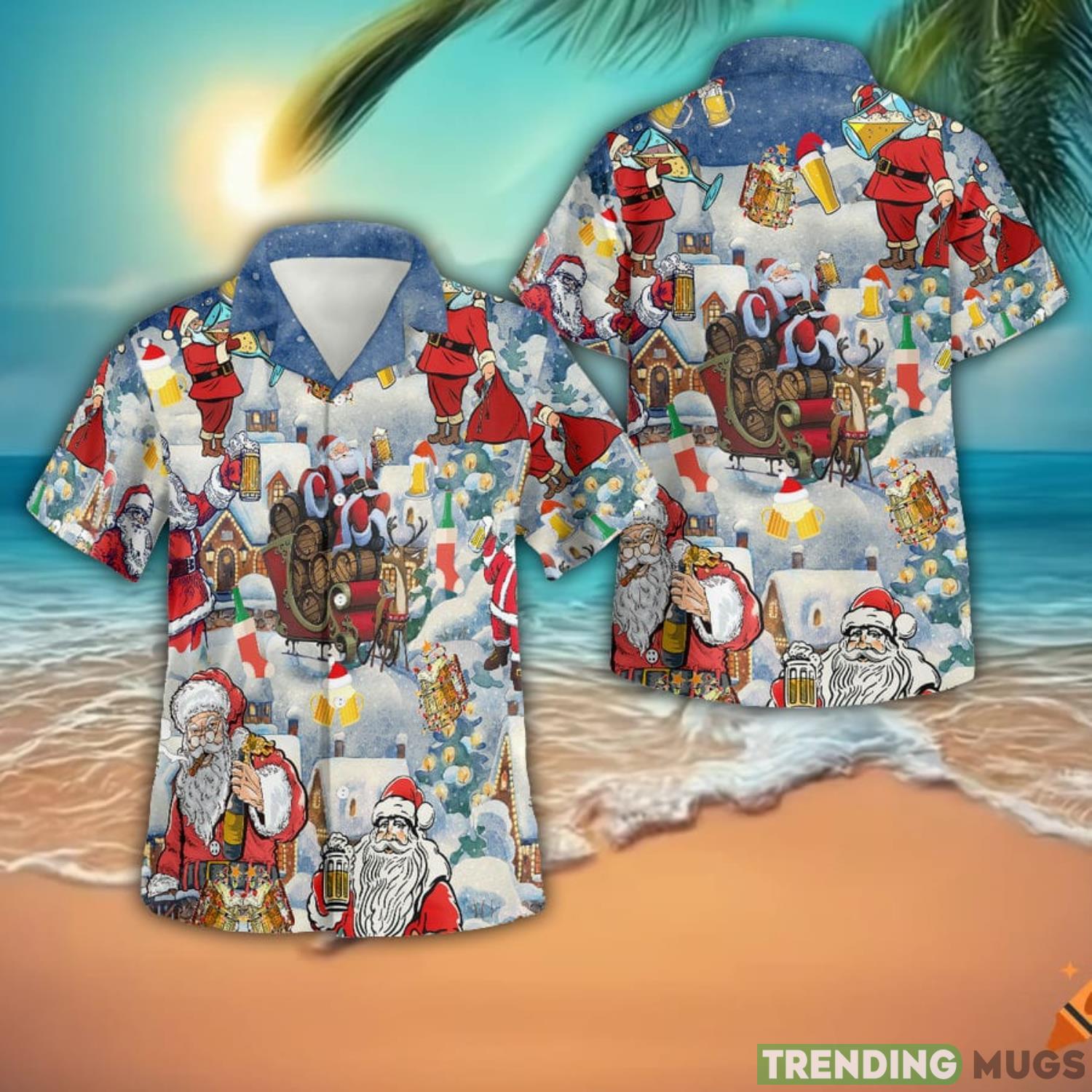 Drinking Beer With Santa Claus 3D Button Hawaiian Shirt Men And Women Aloha Summer Beach Gift Details: