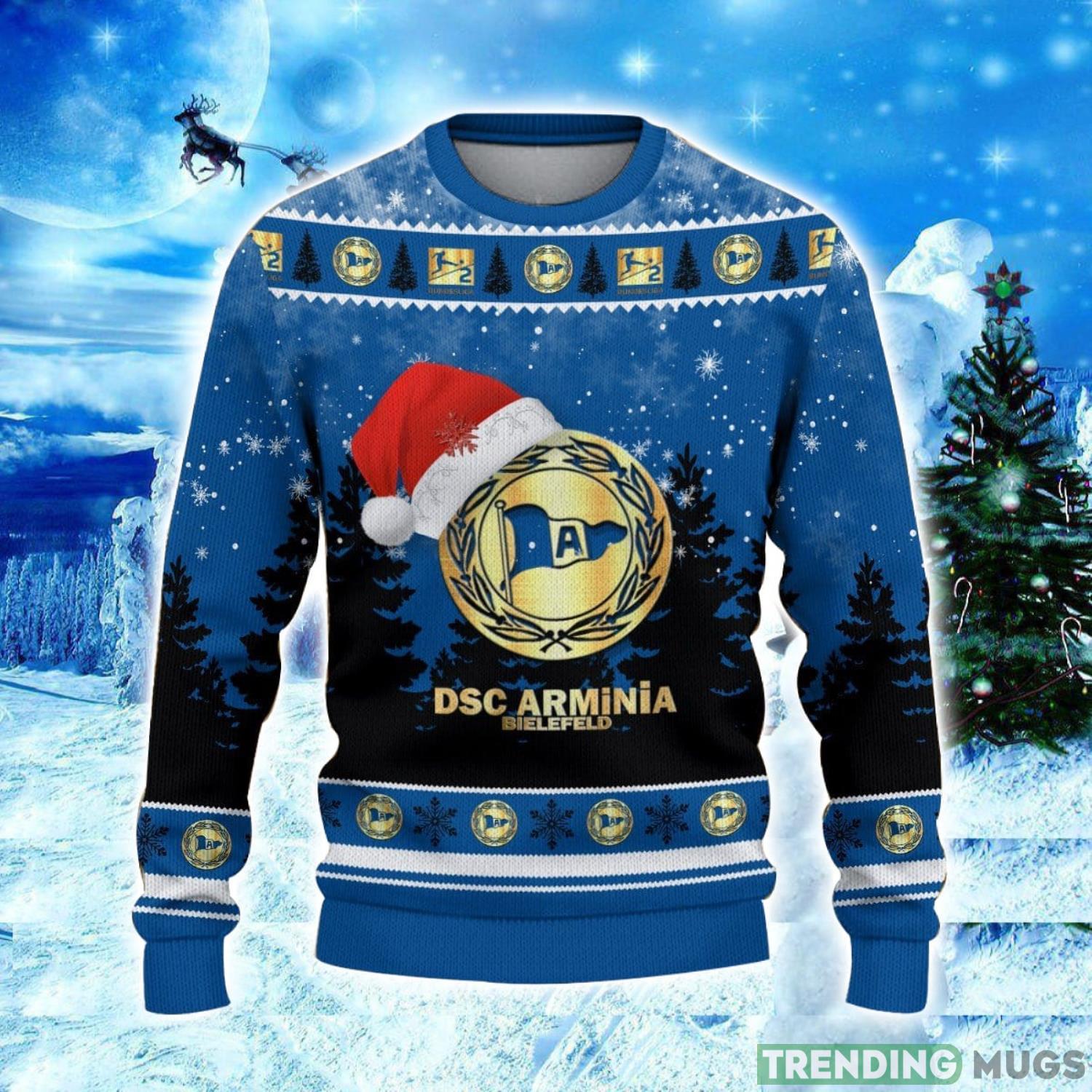 Don’t miss out on the opportunity to showcase your team spirit and festive cheer. Order the DSC Arminia Bielefeld Logo Wearing Santa Hat Ugly Christmas Sweater now and make this holiday season truly unforgettable!