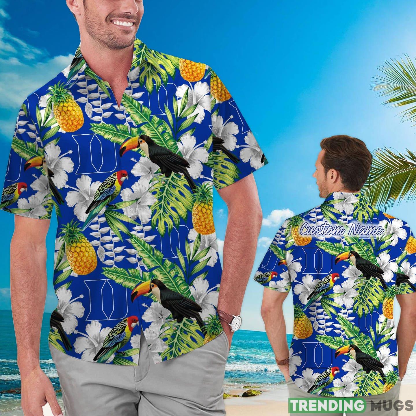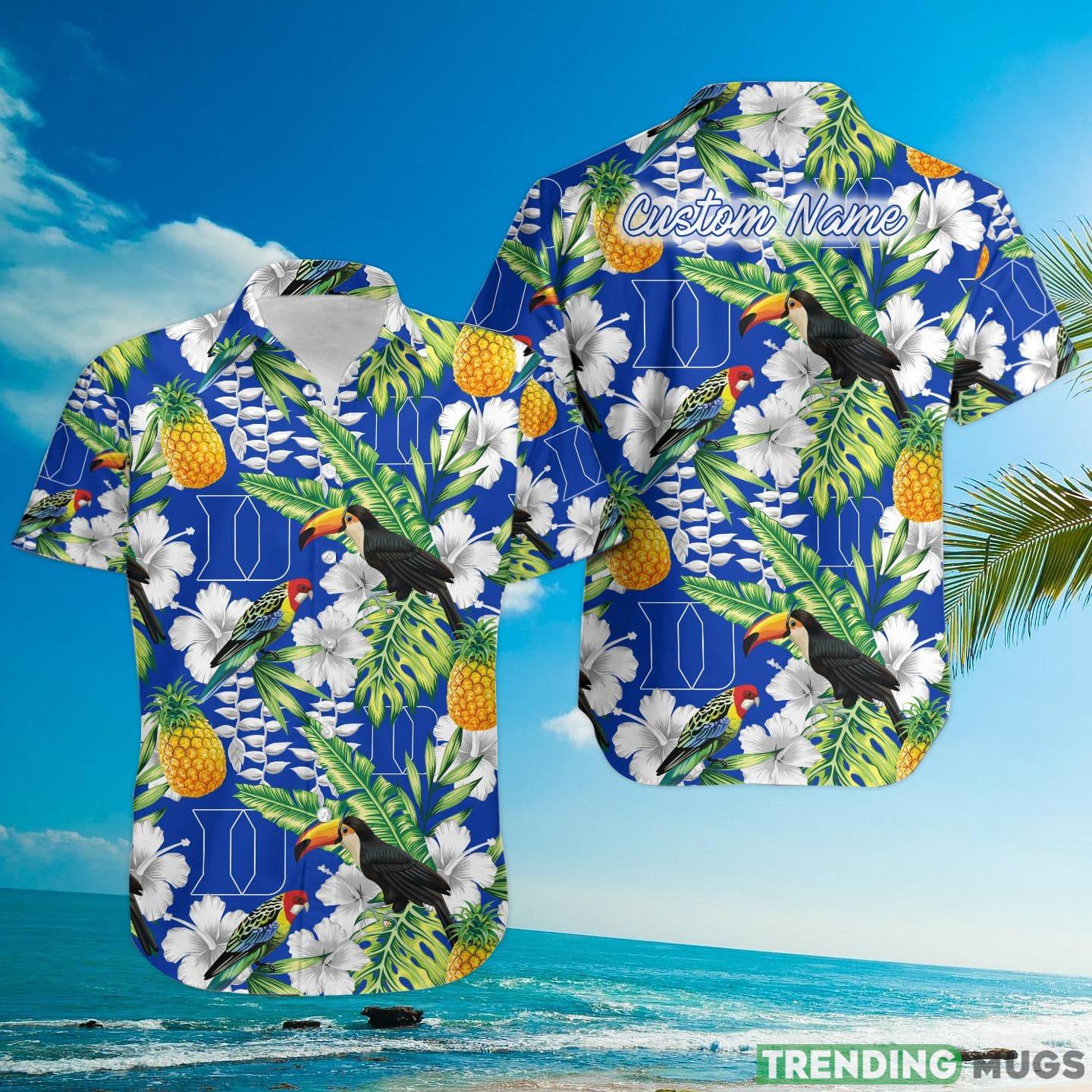 Duke Blue Devils Custom Name Parrot Floral Tropical Hawaiian Shirt Details: