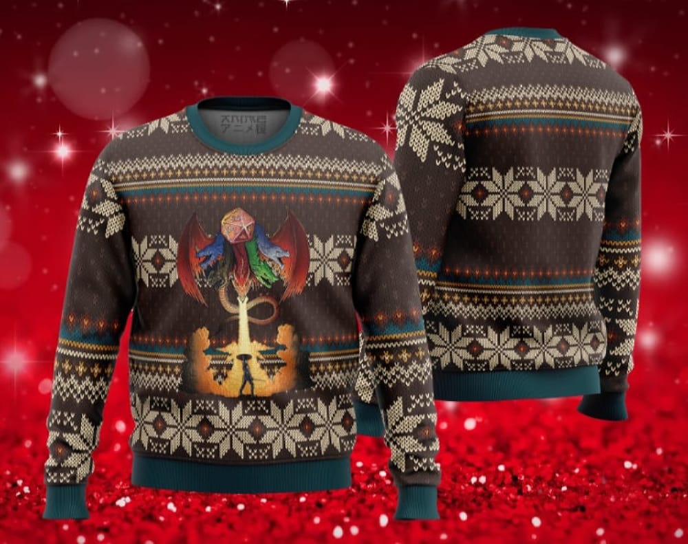 Featuring a captivating all-over print, this Xmas 2023 Gift gift is an absolute must-have for any fan of the Dungeons & Dragons universe. Whether you’re a seasoned player or just love getting lost in a thrilling fantasy world, this sweater will let you showcase your passion in style.