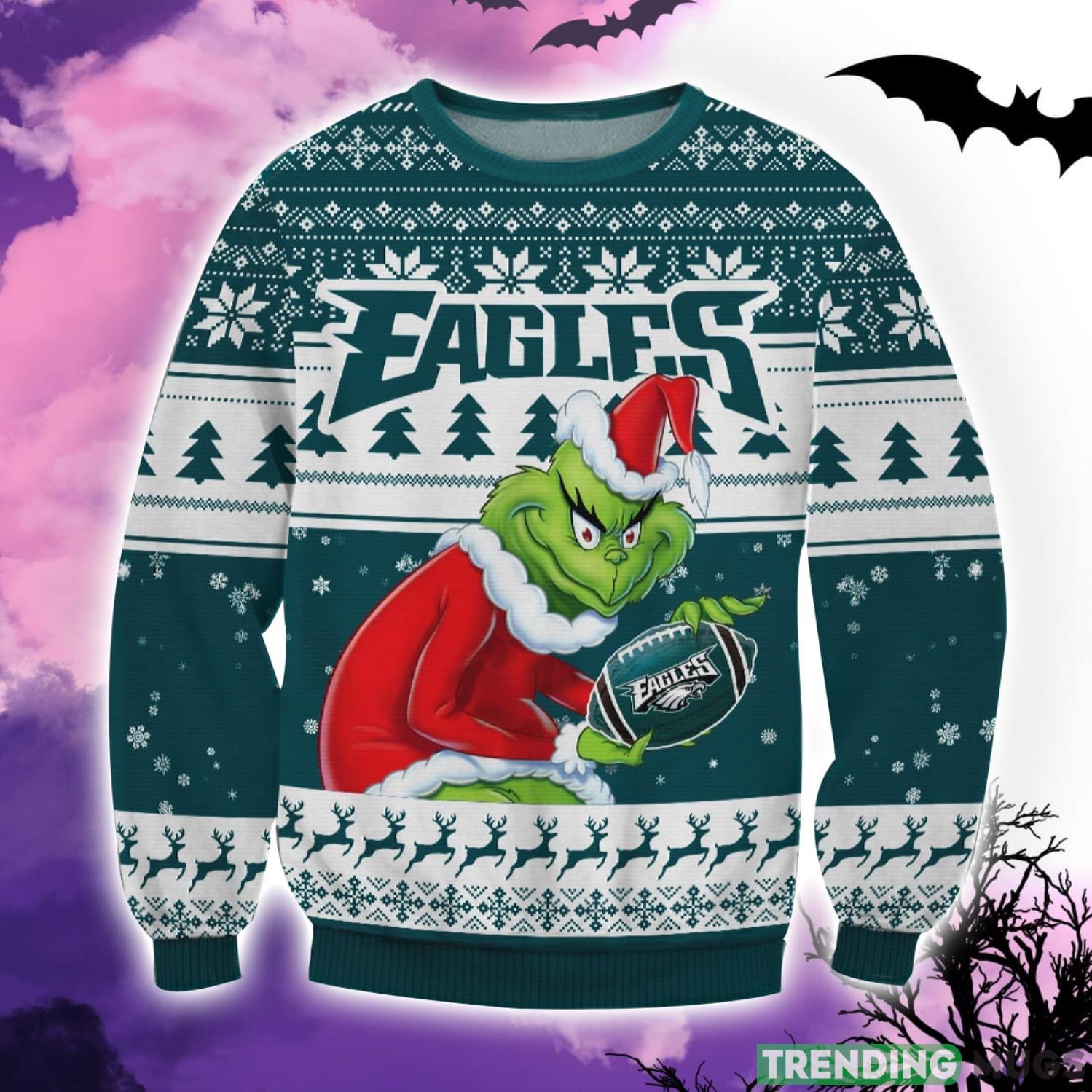 Eagles Grinch Reindeer Snowflake Pattern Ugly Christmas Sweater Product Photo 1