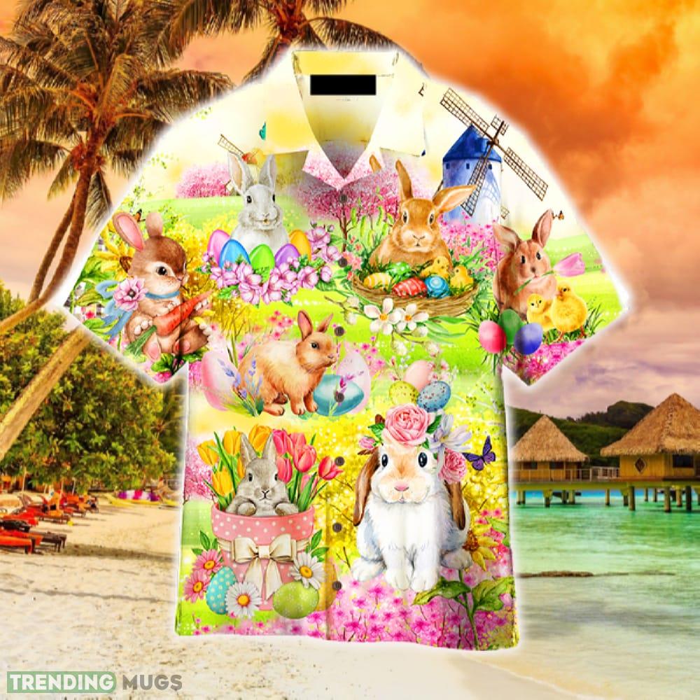 Easter Rabbit Chilling In The Flower Landscape Hawaiian Shirt Summer For Men And Women Details: