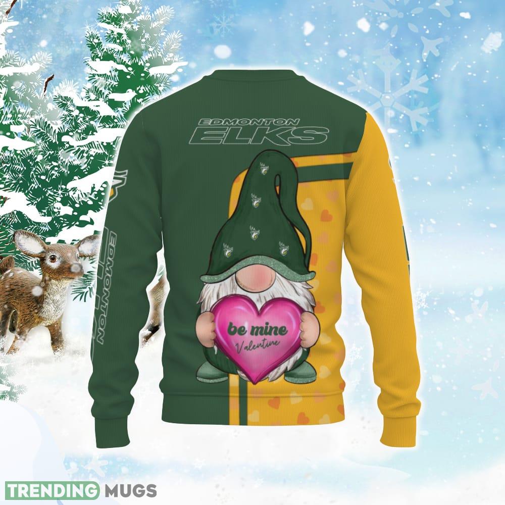 Edmonton Elks Be Mine Valentine Gnomes With Valentine Football American Valentine Day Ugly Christmas 3D Sweater Informations:
