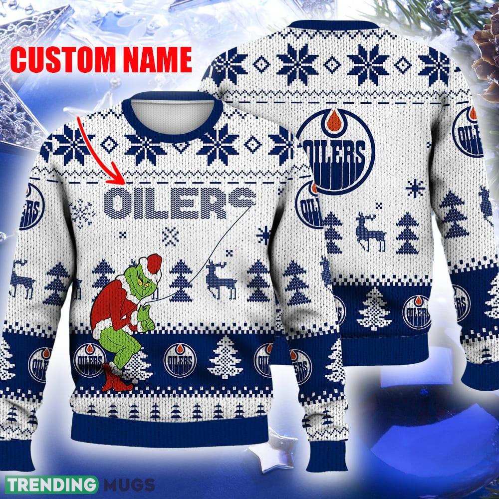 Don’t miss out on this must-have holiday item! The Edmonton Oilers Ugly Christmas Sweater Grinch Custom Ice Hockey NHL Gift For Christmas Holidays Custom Name is the perfect way to show off your team spirit and spread some holiday magic. Order yours today and get ready to rock the holiday season like a true Oilers fan!