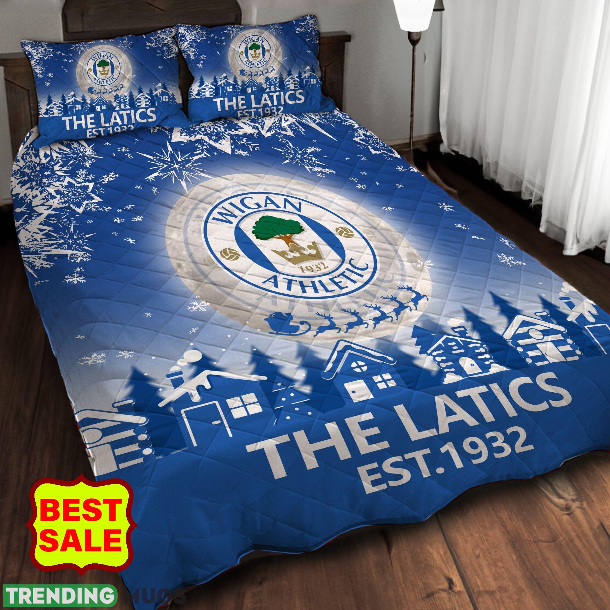 Information EFL Wigan Athletic Big Logo Christmas Quilt Sets Blue Full Size King Queen Twin: