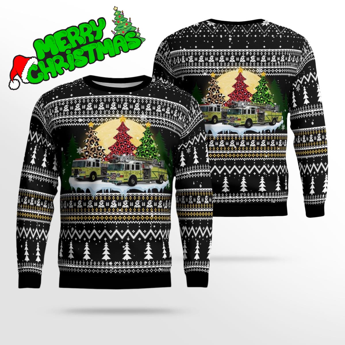 Egg Harbor City NJ Galloway Township Fire Department Pomona Volunteer Fire Company No.3 Christmas Ugly Sweater Gift For Men And Women