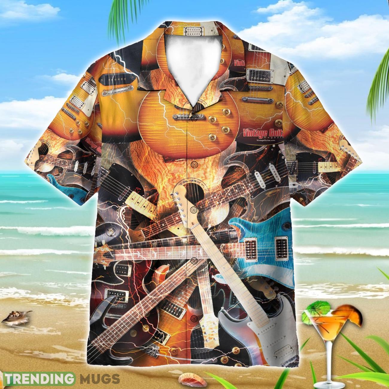 Electric Guitar Vintage AOP Hawaiian Shirt Beach Lover Gift Hawaii Shirt Details: