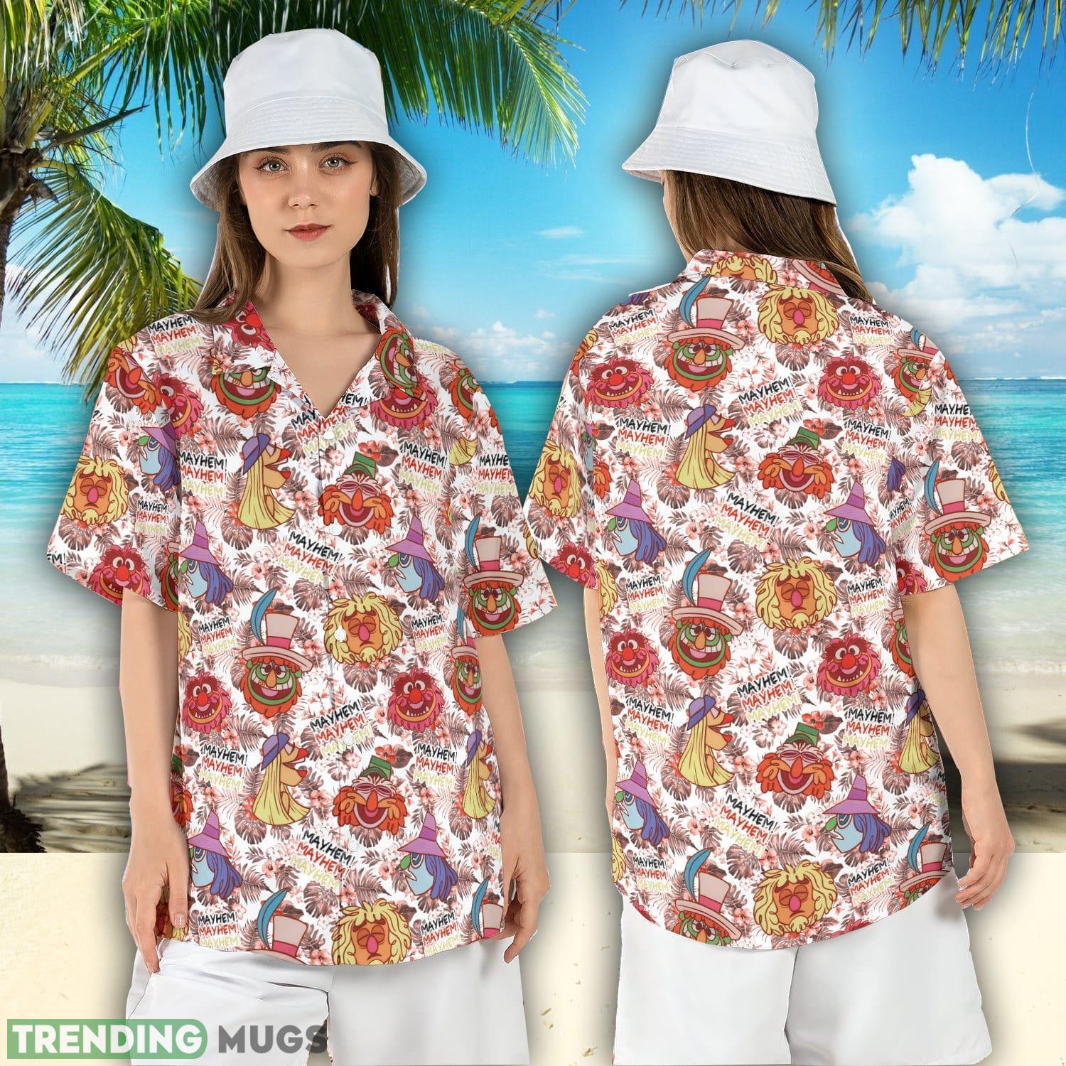 Electric Mayhem Tropical Leaves Hawaiian Shirt Muppets Show Button Shirt Summer Beach Aloha Shirt Details: