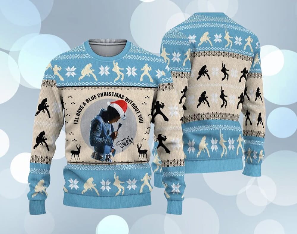 Elvis Presley Ugly Christmas Sweater I’ll Have A Blue Christmas Without You Ugly Sweater Ugly Christmas Pattern Christmas Gift – 021223-114121
