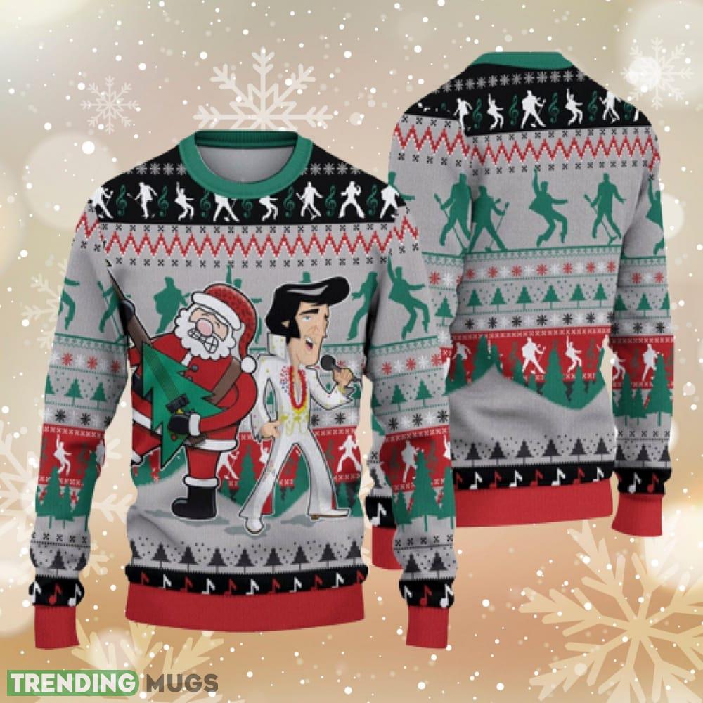 Crafted with the utmost care and attention to detail, this premium sweater features an eye-catching over-print design that beautifully captures the iconic Elvis Presley alongside jolly old Saint Nick. The vibrant colors and intricate artwork bring the Christmas spirit to life, making it a must-have for any Elvis fan.