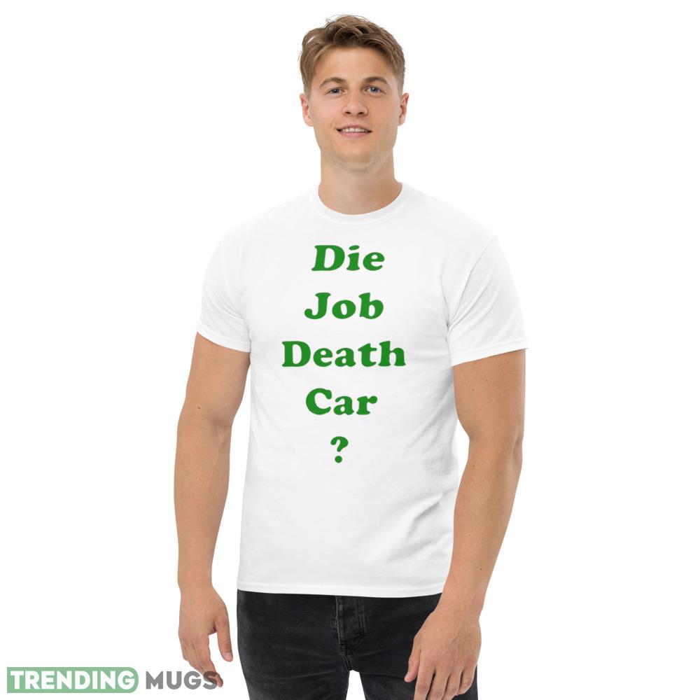 The Engrish die job death car White T Shirts are available in a range of sizes, making them the perfect choice for men and women of all shapes and sizes. Whether you’re looking to express your individuality, make a statement, or simply stand out from the crowd, these T-shirts are the ideal choice.