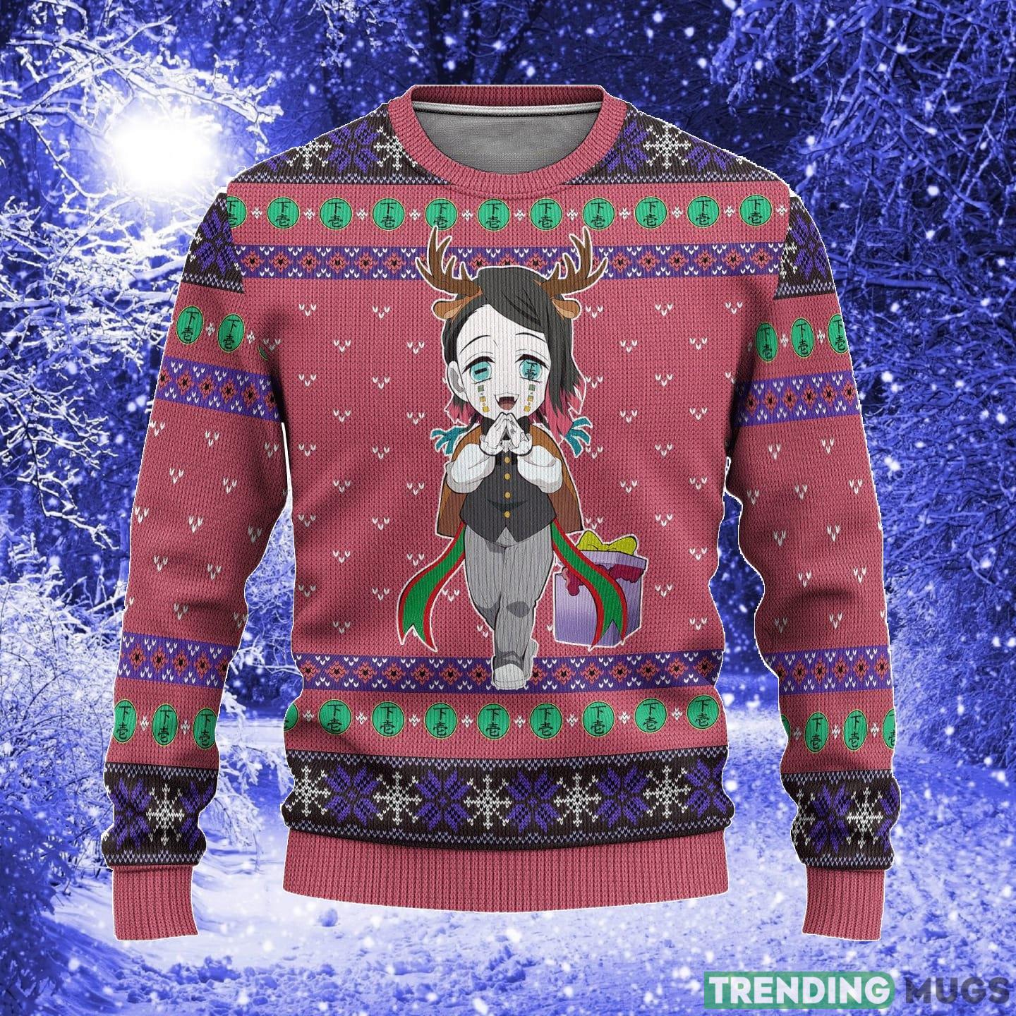 Not only does this sweater showcase your love for Demon Slayer, but it also spreads holiday cheer with its festive designs and patterns. It features classic Christmas elements like snowflakes, reindeer, and Christmas trees, all infused with the enchanting world of Demon Slayer.