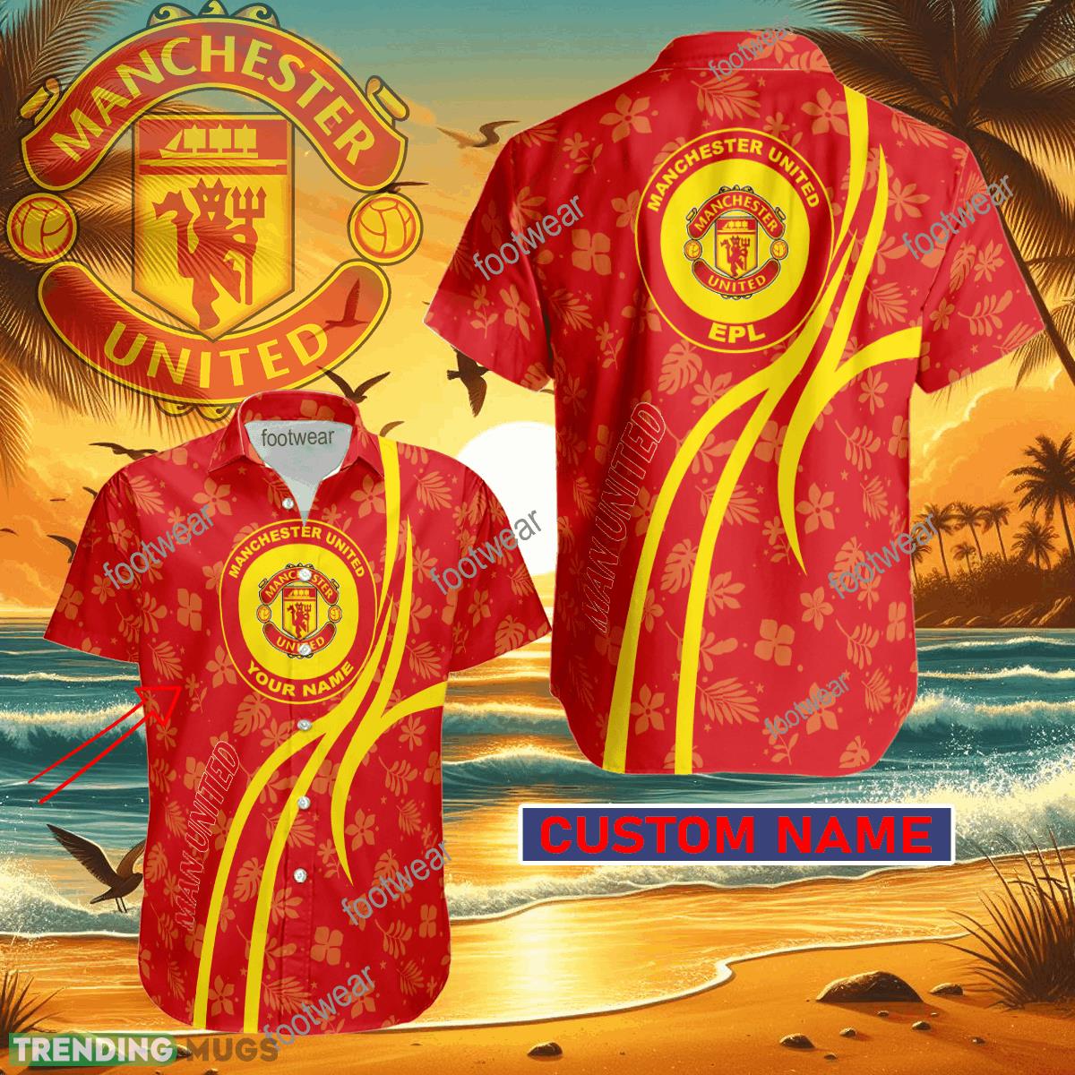 EPL Manchester United Hawaiian Shirt Design Gift Fans Summer Holidays Custom Name Details: