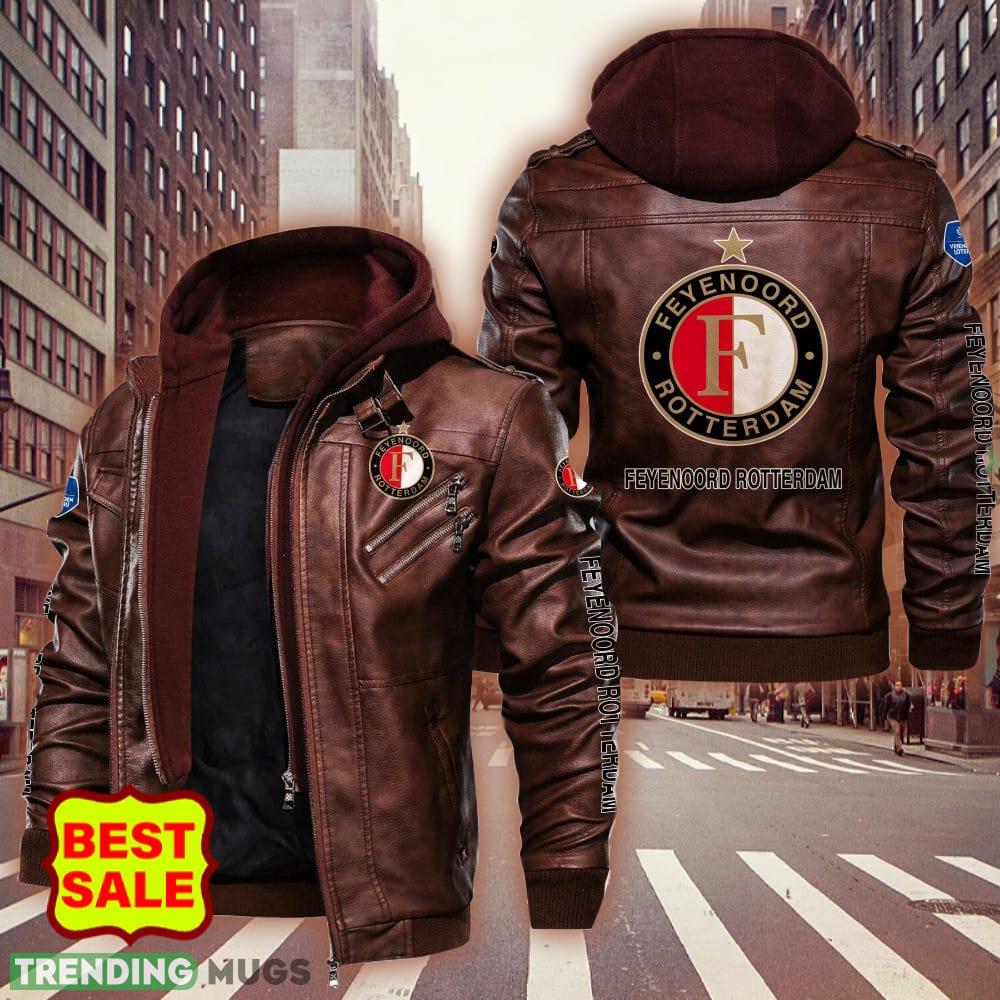 Eredivisie Feyenoord Rotterdam Design 3 Teams Logo Brown And Black Leather Jacket Material Information