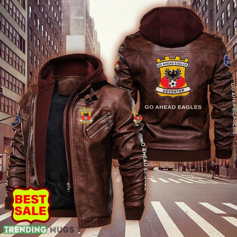 Some of the Eredivisie Go Ahead Eagles Logo 7 Brown And Black Leather Jacket For Men And Women photos
