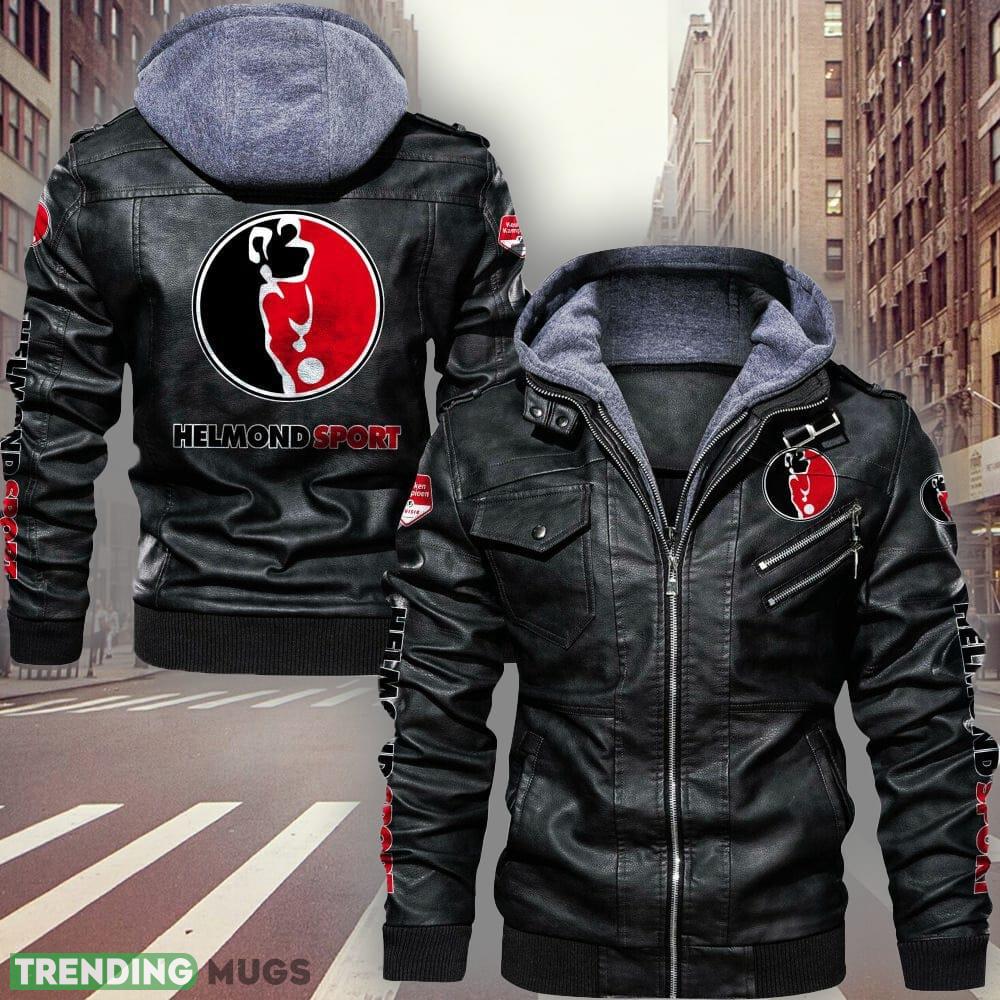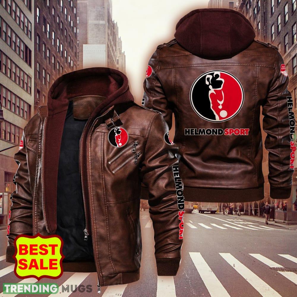 Eredivisie Helmond Sport Big Logo Brown And Black Leather Jacket Men Women Material Information