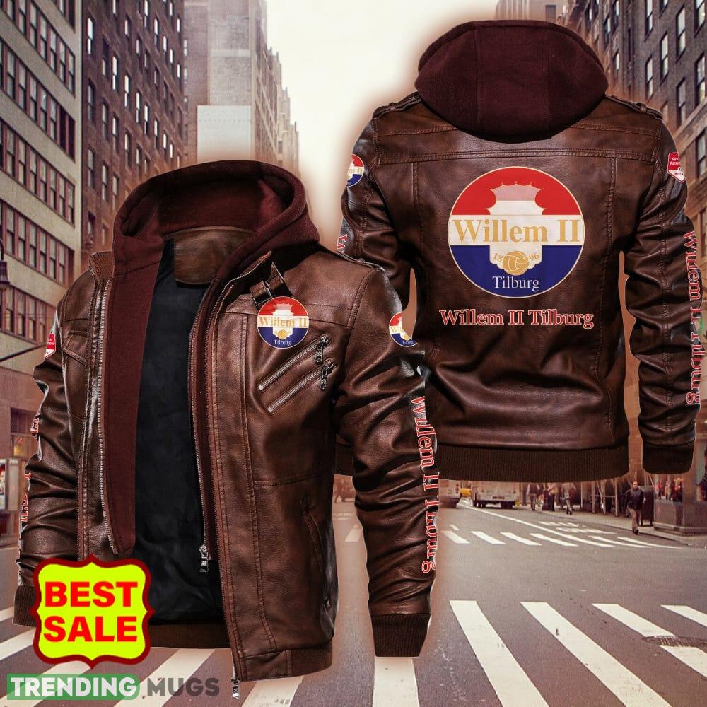 Eredivisie Willem II Tilburg Big Logo Brown And Black Leather Jacket Men Women 2D Leather Jacket