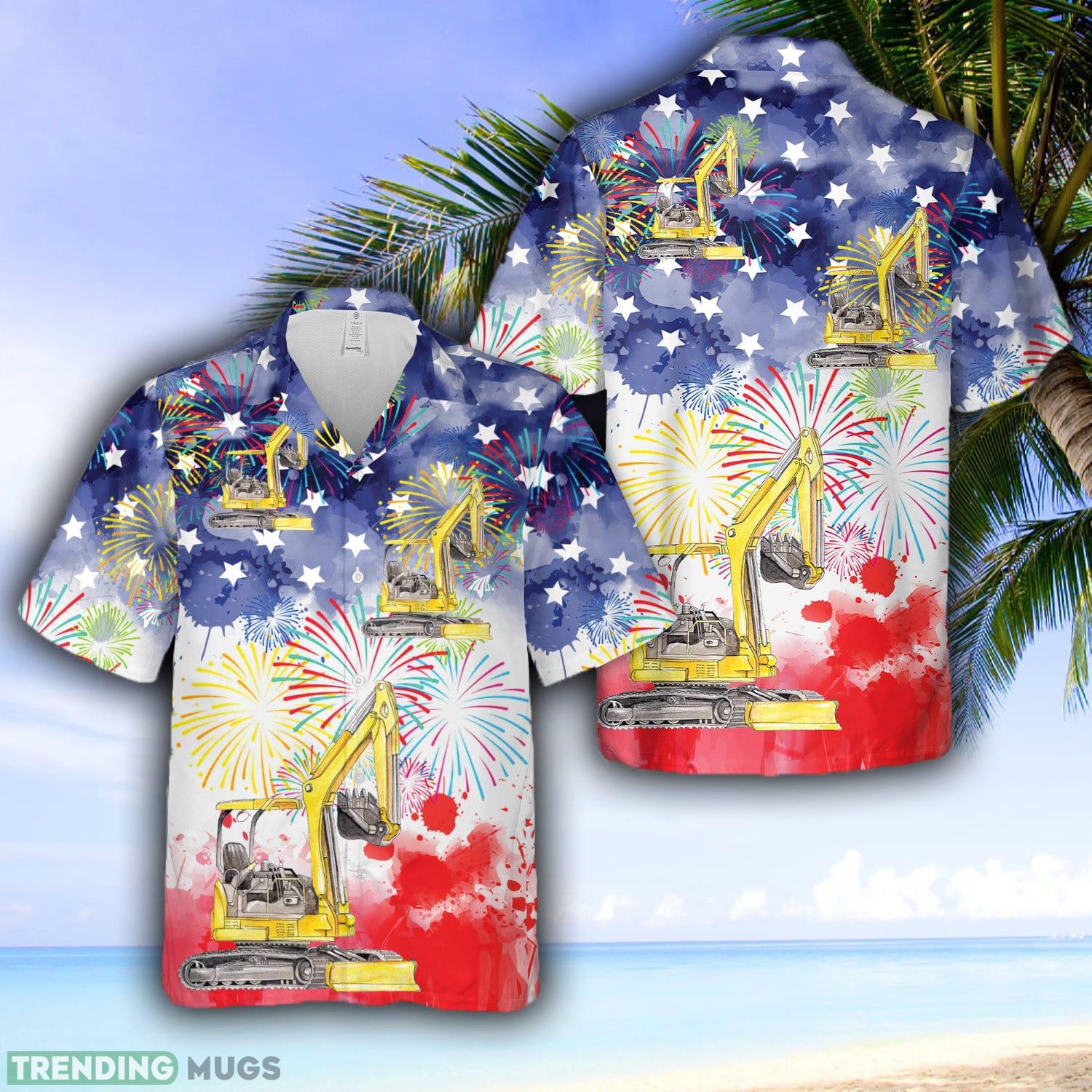 Excavator Backhoe construction, 4th Of July Hawaiian Shirt – Excavator Backhoe construction, 4th Of July Hawaiian Shirt