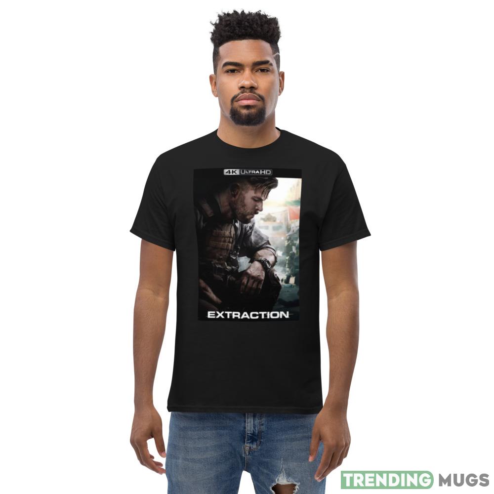 Are you a fan of high-octane action movies? Look no further than the Extraction Action Movie shirt! This stylish tee features bold graphics inspired by the heart-pounding action of the hit film. Made with comfortable and durable materials, it’s perfect for wearing to the movies or just out and about. Show off your love for the adrenaline-fueled excitement of Extraction with this must-have shirt. Don’t miss out on the chance to add this shirt to your collection!