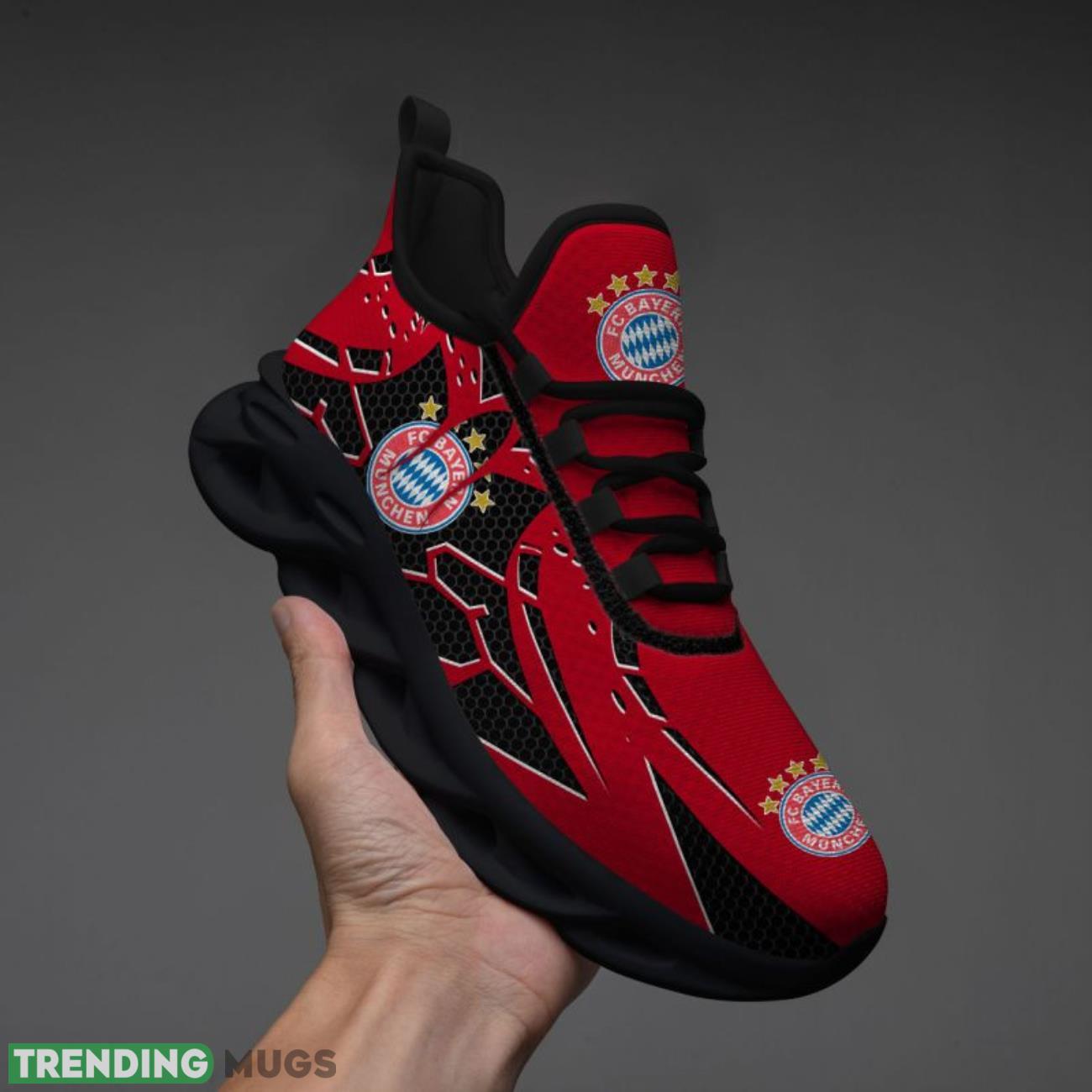 This FC Bayern Munchen Max Soul Shoes Running Sport Shoes Men Women Sneakers is a breathable, lightweight, and comfortable casual outdoor shoe that has a unique design. It is made of a mesh fabric which makes it sweat absorbent and breathable, while the rubber bottom ensures traction, comfort, and durability. It is available in two colors: black or white sole. There are two styles of shoelace holes so you can choose your preference.