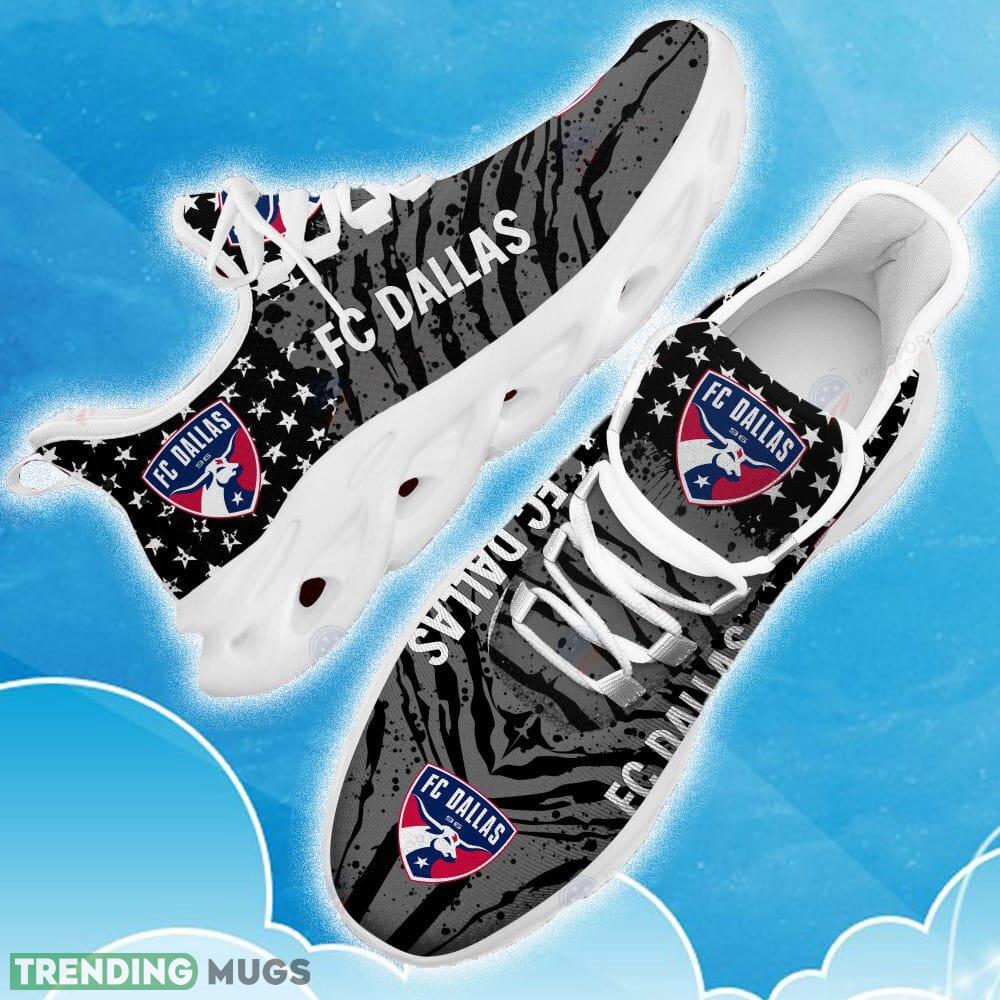 This Fc Dallas Black New Chunky Shoes Camo Logo Printed For Men And Women Gift Fans Max Soul Sneakers is a breathable, lightweight, and comfortable casual outdoor shoe that has a unique design. It is made of a mesh fabric which makes it sweat absorbent and breathable, while the rubber bottom ensures traction, comfort, and durability. It is available in two colors: black or white sole. There are two styles of shoelace holes so you can choose your preference.