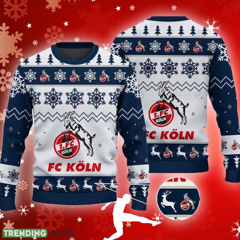 Fc Koln Big Logo Ugly Christmas Tree Navy Sweater For Men And Women – Fc Koln Big Logo Ugly Snowflakes Reindeer Navy Sweater For Men And Women