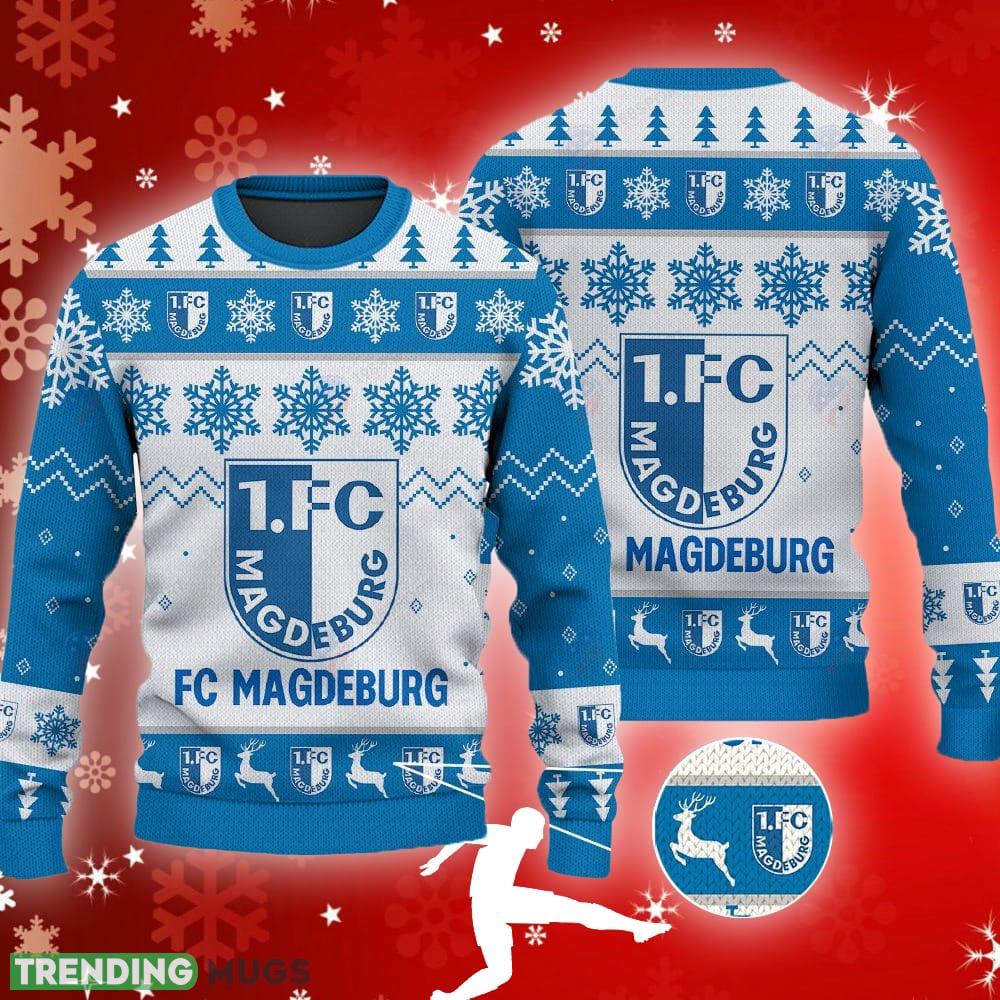 FC Magdeburg Big Logo Ugly Snowflakes Reindeer Blue Sweater AOP For Men And Women Informations:
