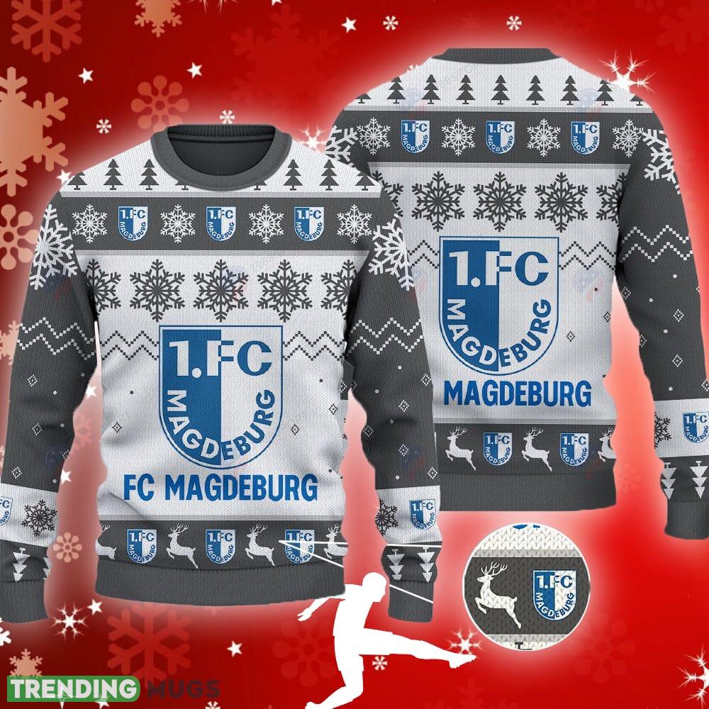 Featuring the iconic FC Magdeburg logo prominently displayed on the front, this sweater will make a bold statement wherever you go. The unique design combines festive snowflakes and adorable reindeer, adding a touch of holiday cheer to your look. Made from high-quality materials, this sweater is not only comfortable but also durable, ensuring it will last season after season.
