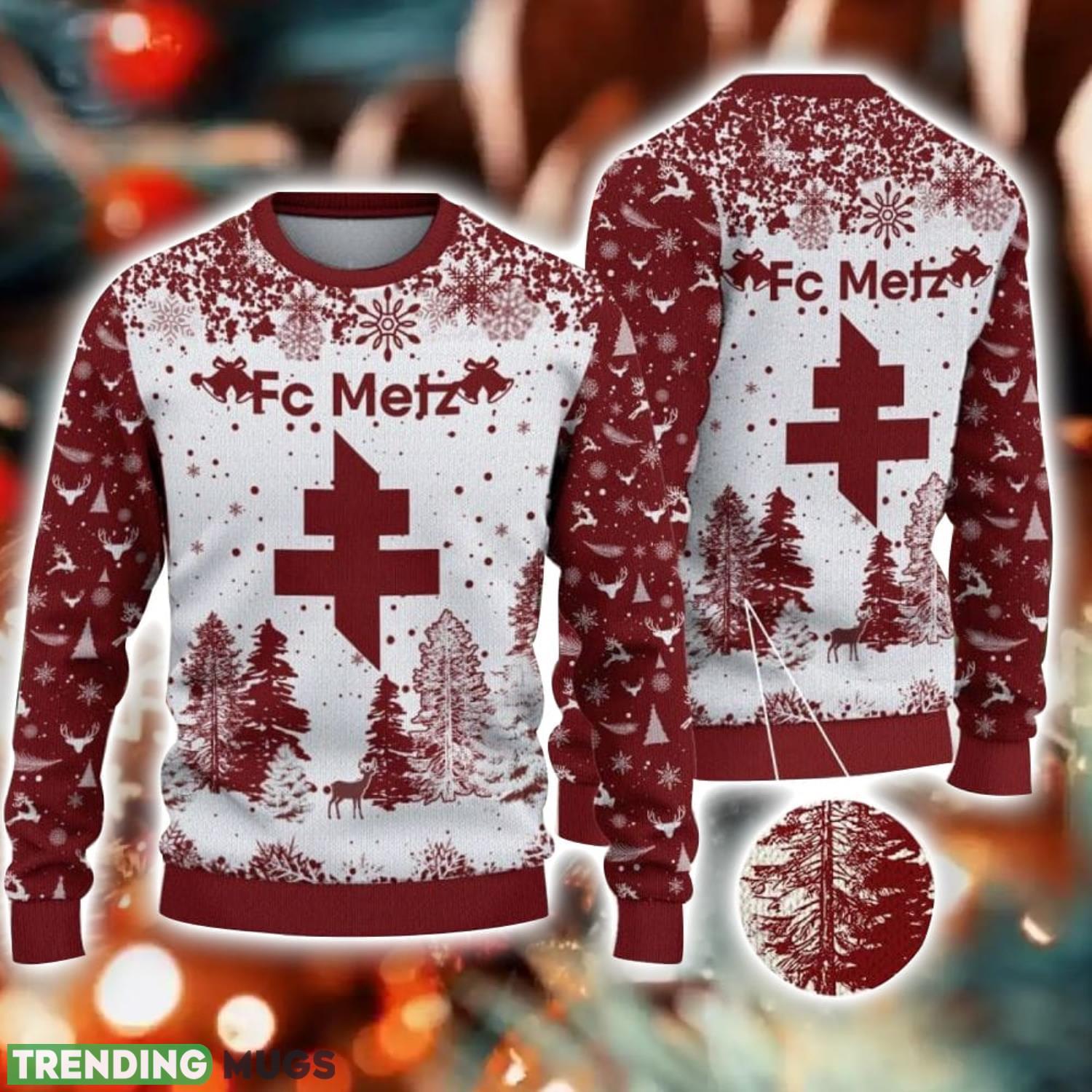 Get into the festive spirit with our FC Metz Big Logo Pine Trees Big Fans Gift Christmas Sweater For Men And Women. This eye-catching sweater is the perfect way to show off your love for your favorite football club during the holiday season.
