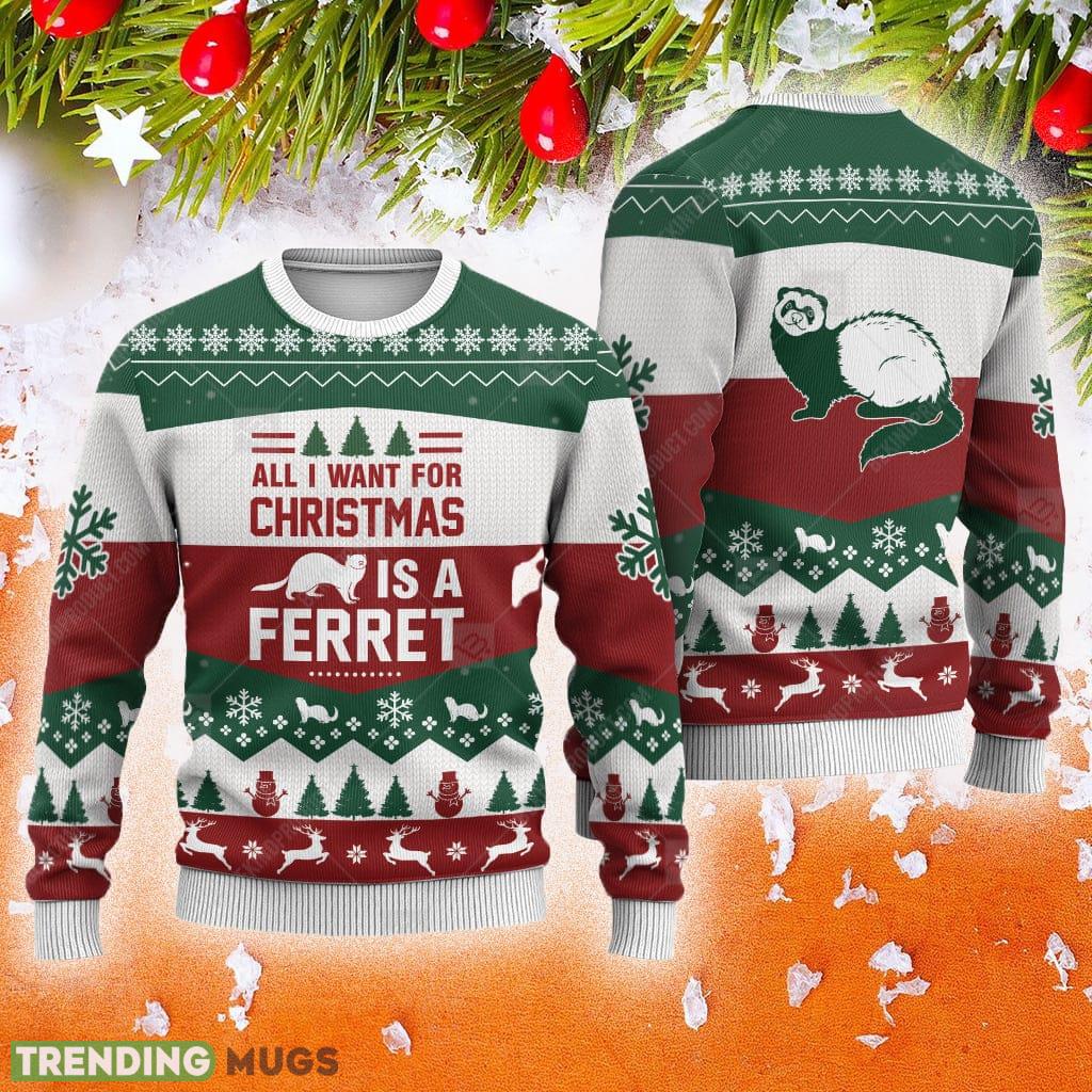 Ferret All I Want For Animals Ugly Christmas Sweater AOP Gift For Men And Women – Ferret All I Want For Animals Ugly Christmas Sweater AOP Gift For Men And Women