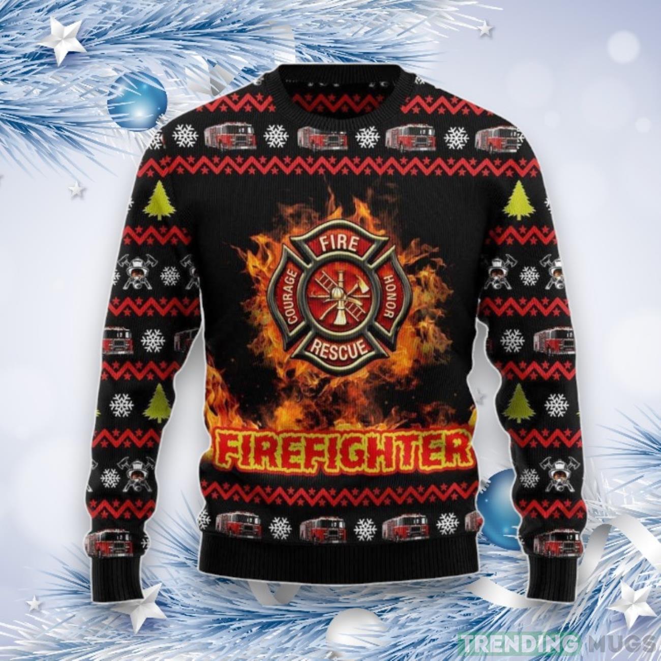 Festive Firefighter Ugly Christmas Sweater – Ideal For Men & Women – Perfect Gift Product Photo 1