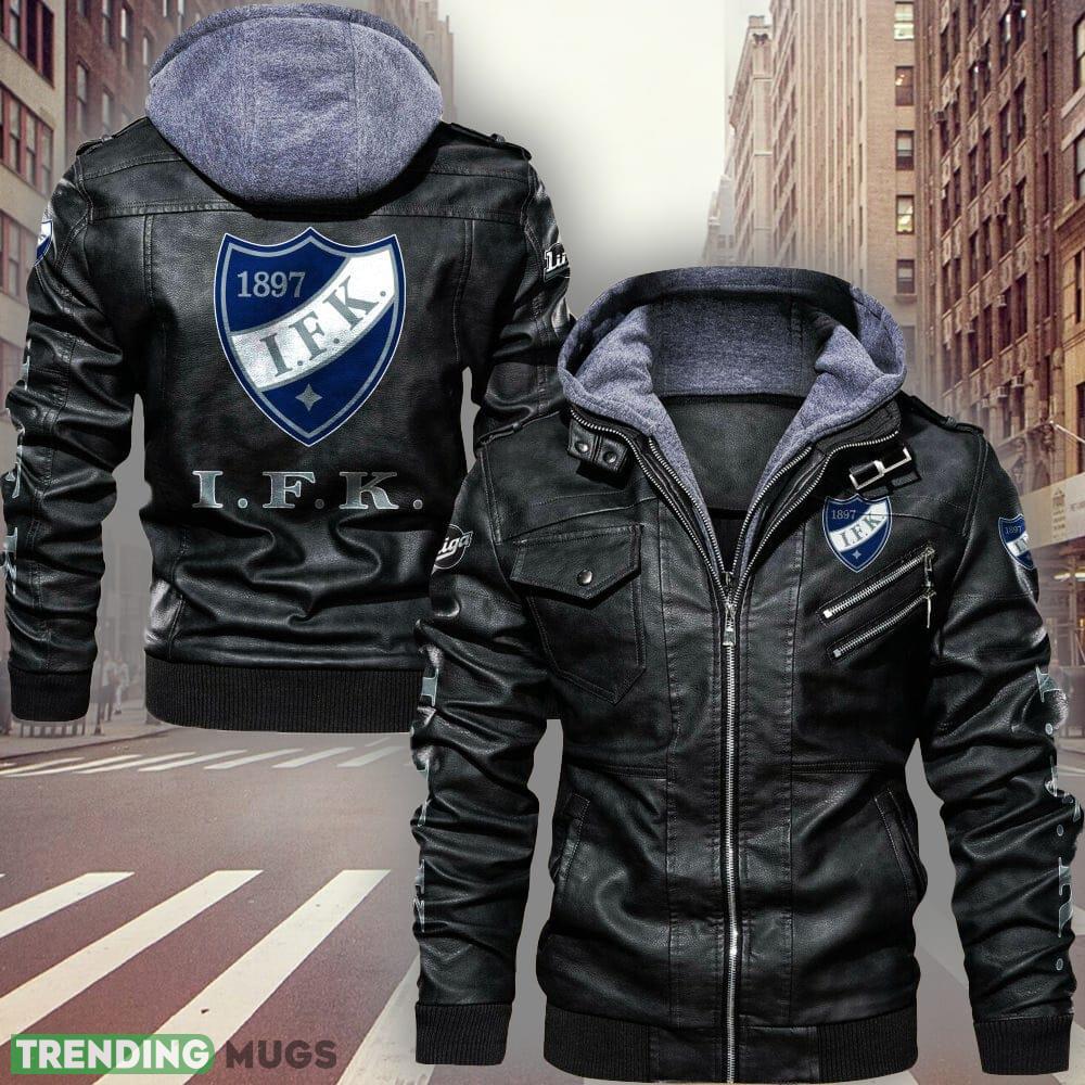 Finland Fans HIFK Big Logo Brown And Black Leather Jacket Men Women Material Information