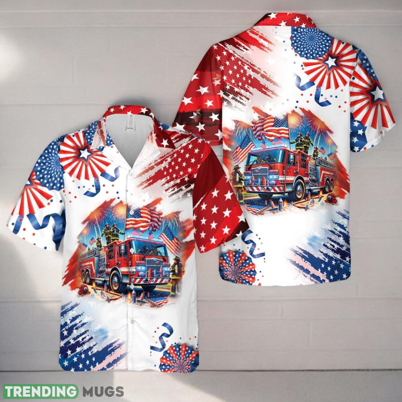 Fire Truck 4th Of July Hawaiian Shirt Details: