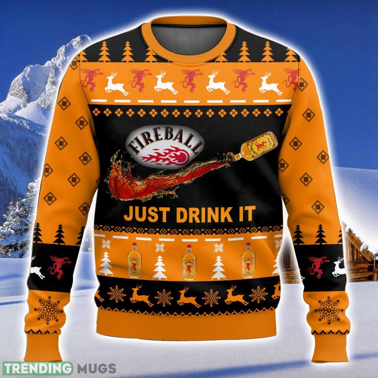 Fireball Just Drink It All Over Printed Ugly Christmas Sweater 2023 Christmas Gift Ideas Holiday Gift Informations: