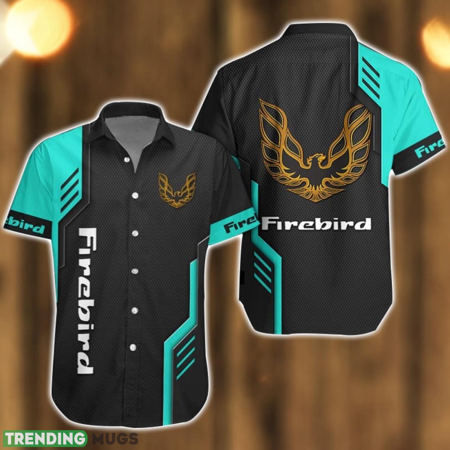 Some of the Firebird Pontiac Logo Mix Light Blue and Black Color Hawaiian Shirt For Men And Women photos