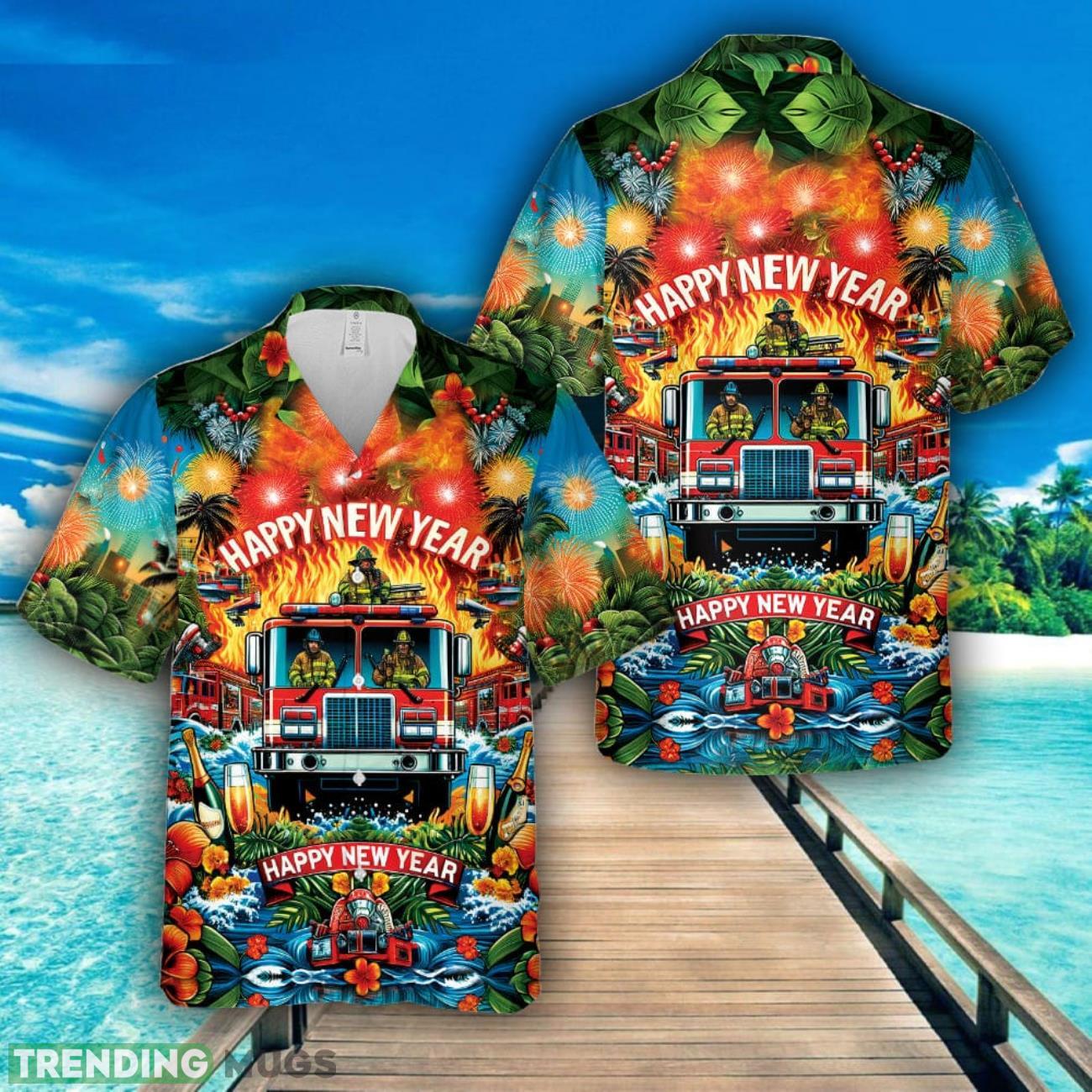 Firefighter Fire Truck Happy New Year 3D Hawaiian Shirt Summer Trending Beach Gift Details: