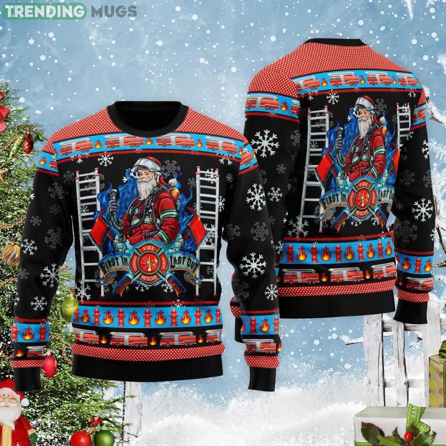 Firefighter Santa First In Last Out Ugly Christmas Sweater Informations: