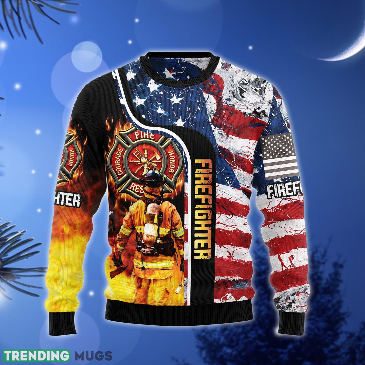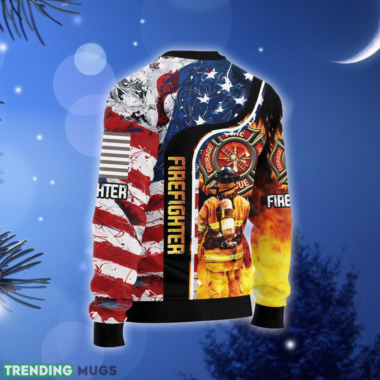 Firefighter USA Flag Ugly Christmas Sweater Gift Men Women