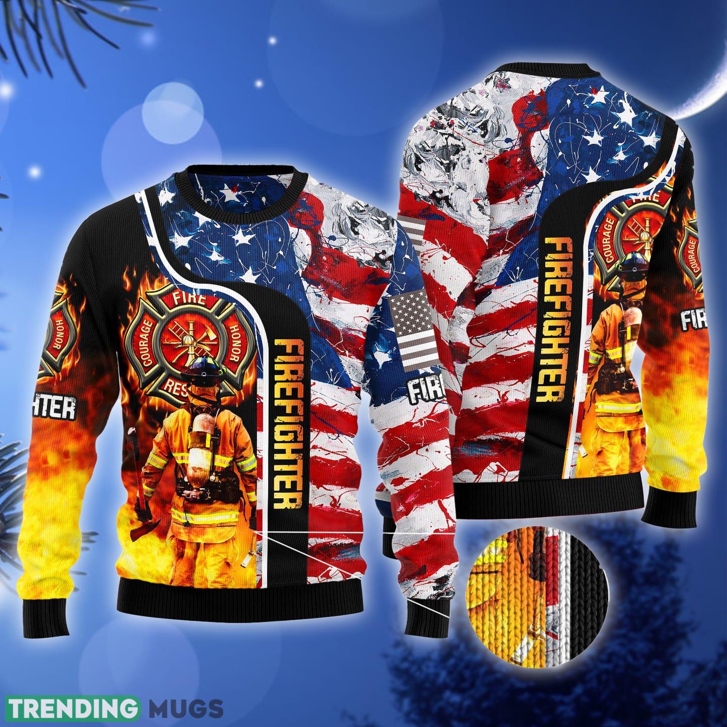 Firefighter USA Flag Ugly Christmas Sweater Gift Men Women Informations: