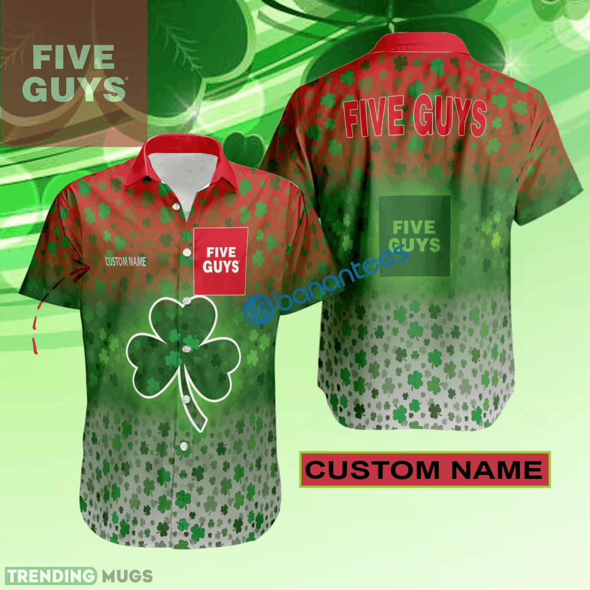 Five Guys Hawaiian Shirt Logo Brand Design Patrick Day Custom Name Details: