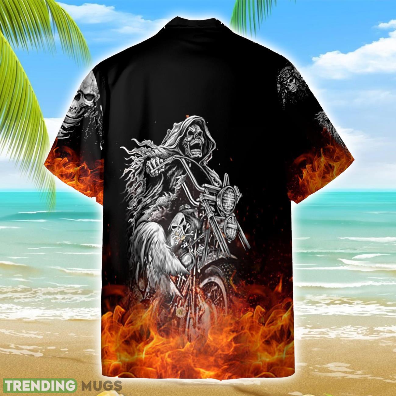 Flame Skull Riding Motobike AOP Hawaiian Shirt Beach Lover Gift Hawaii Shirt Product Photo 2