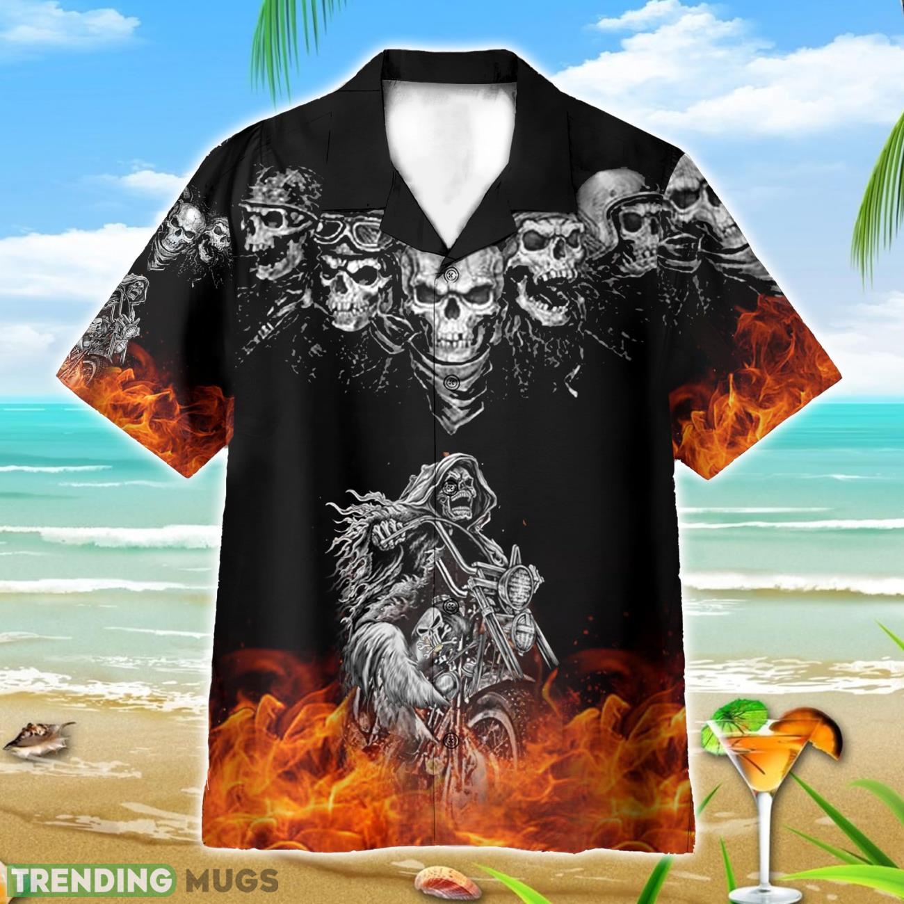 Flame Skull Riding Motobike AOP Hawaiian Shirt Beach Lover Gift Hawaii Shirt Details: