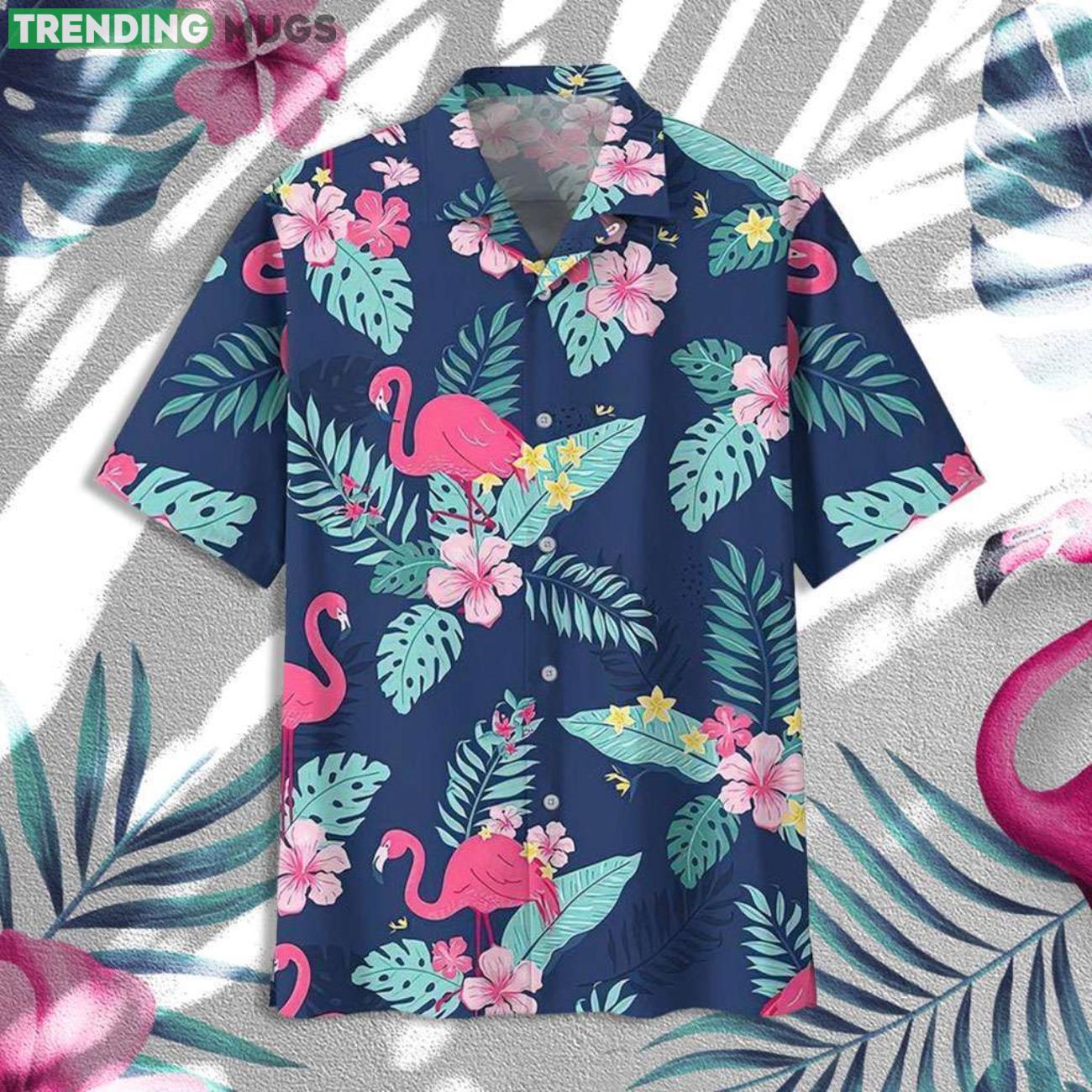 Flamingo Cute Summer Gift Flamingo Blue Leaves Hawaiian Shirt Details: