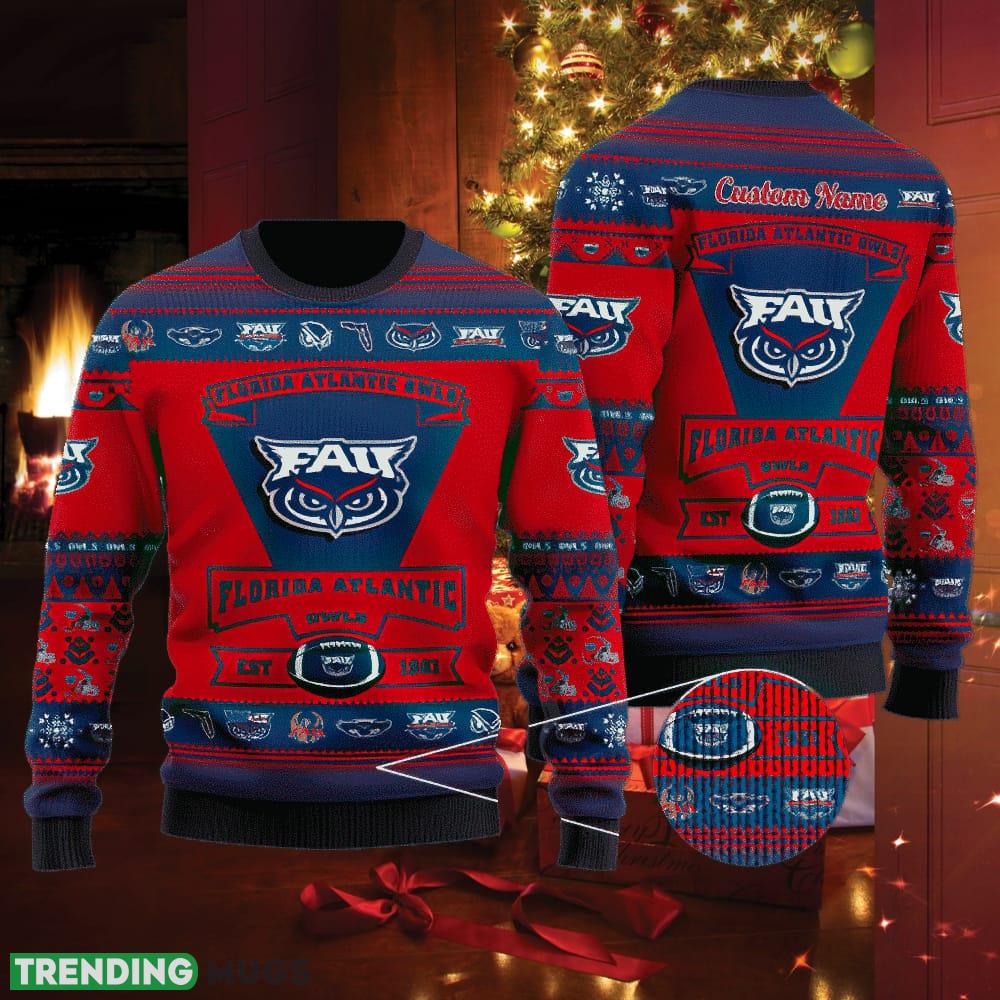 Florida Atlantic Owls Football Team Logo Knitted Christmas 3D Sweater Woven Custom Name – Florida Atlantic Owls Football Team Logo Knitted Christmas 3D Sweater Woven Custom Name